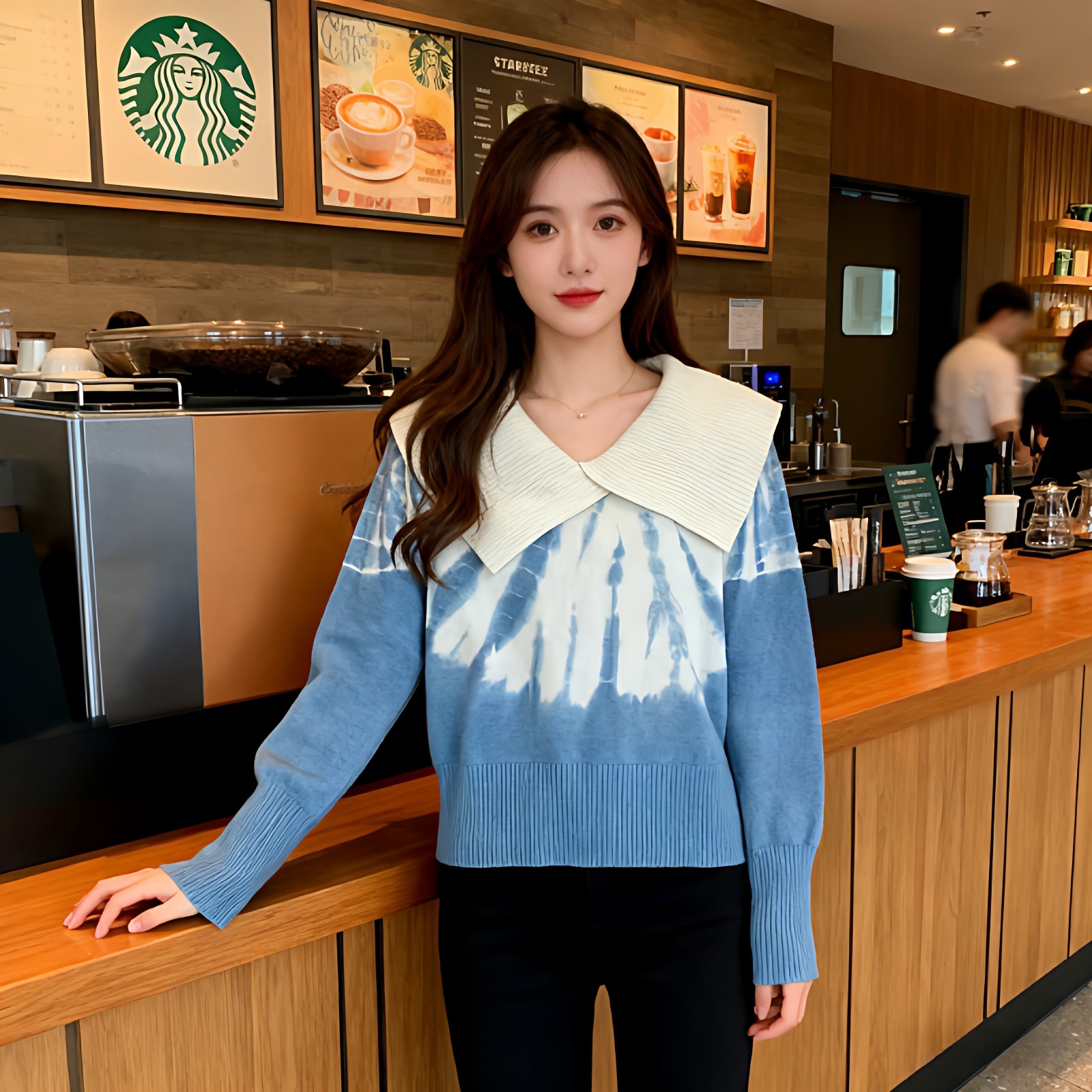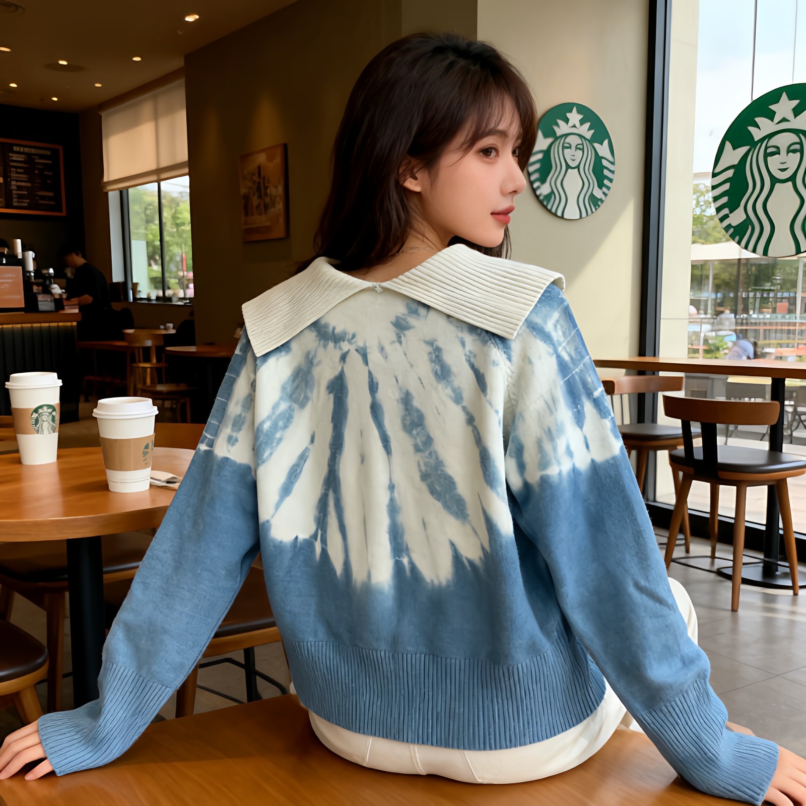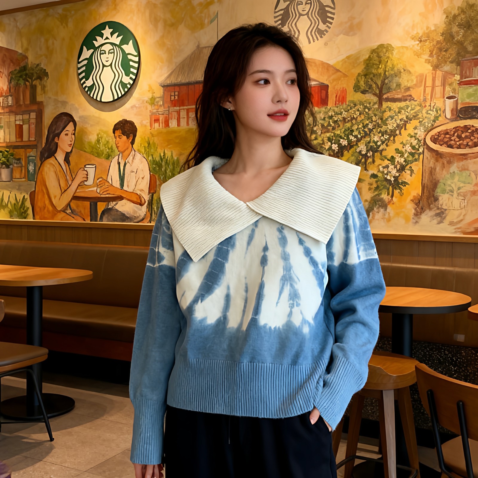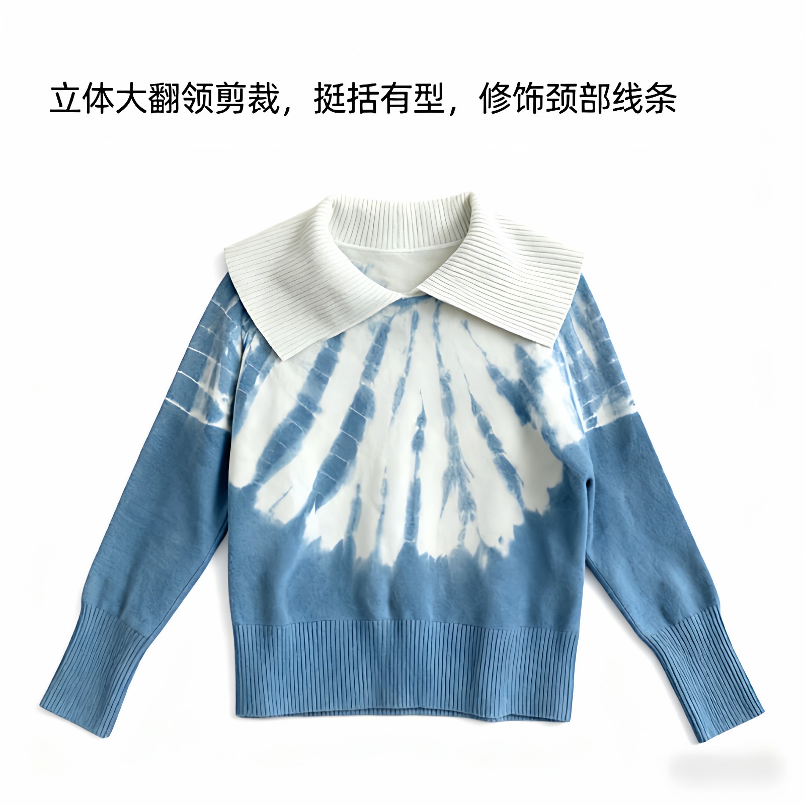 首页> 女装> 扎染针织短款上衣女春季新款宽松百搭针织衫外穿打底衫大翻领毛衣