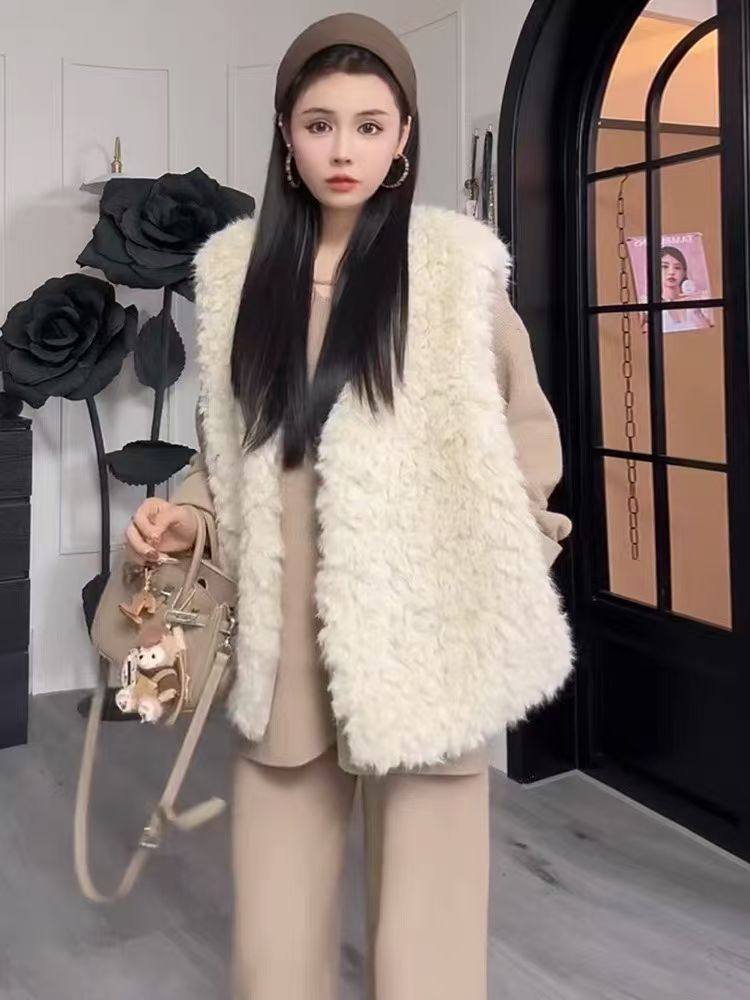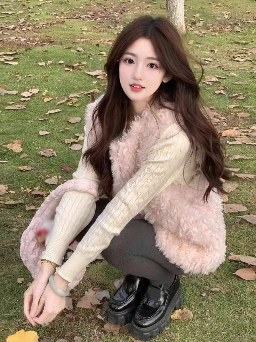 2025冬新款韩版小个子显瘦百搭针织马甲女背心开衫上衣毛绒绒外套