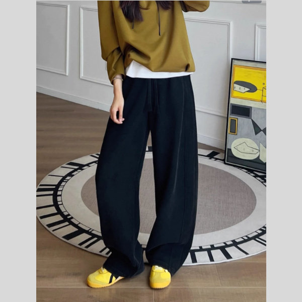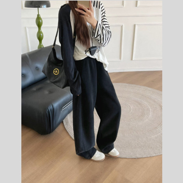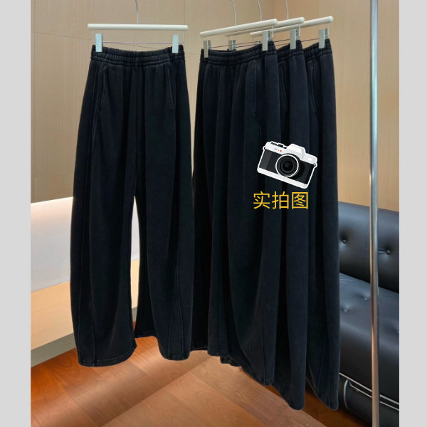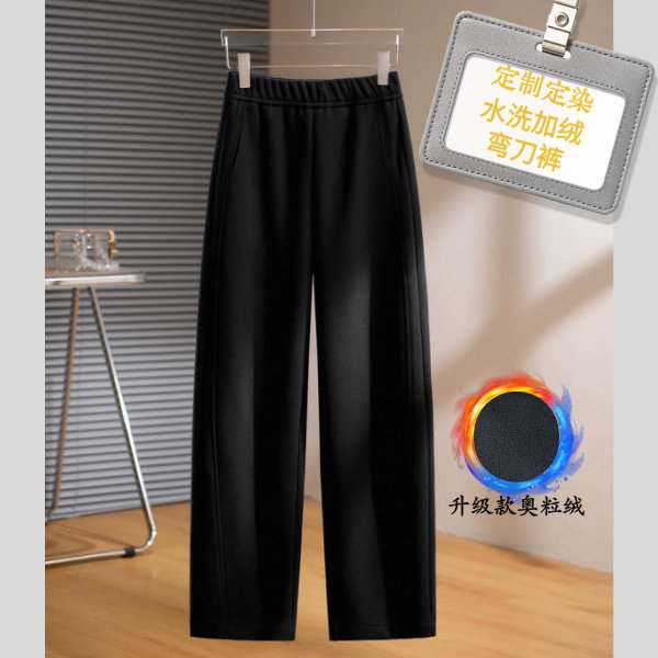 女士秋冬加绒加厚水洗弯刀裤高腰巴恩风时尚保暖百搭直筒拼接长裤