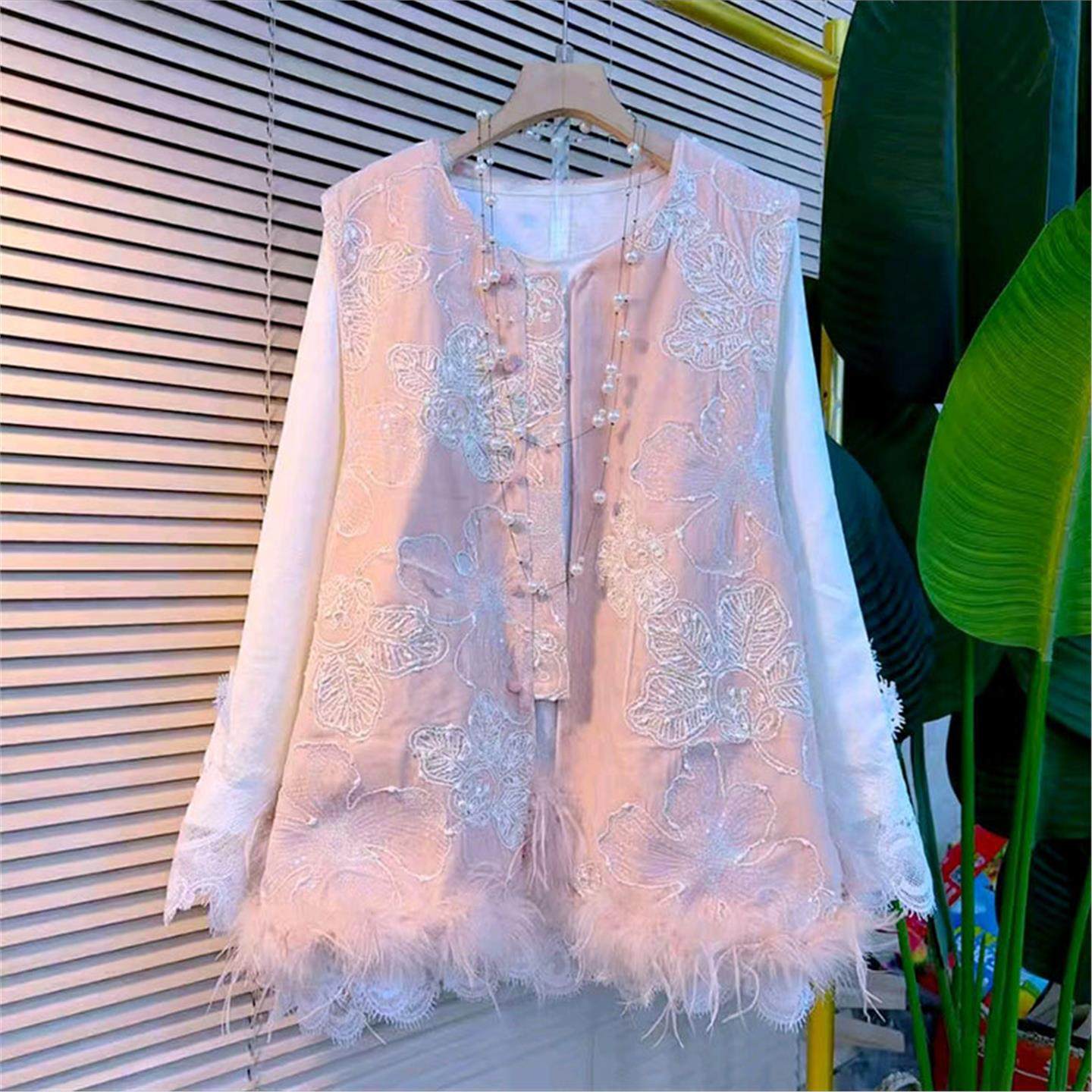 胖妹妹秋季新款大码女装时尚中式复古风刺绣拼接毛毛马甲打底小衫