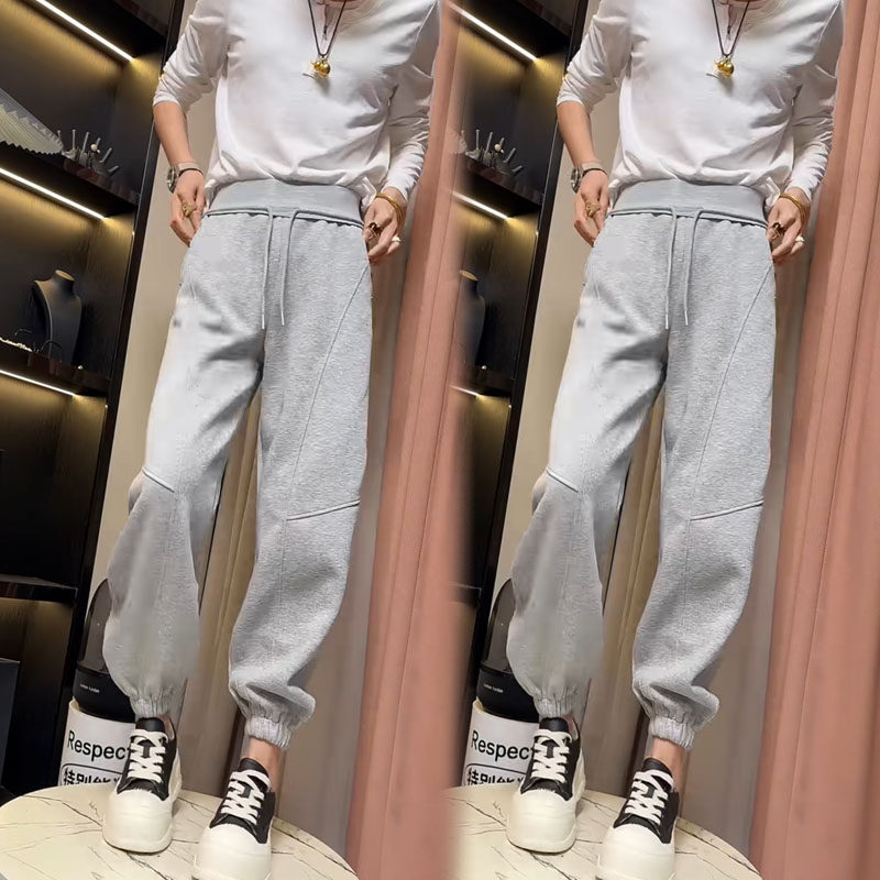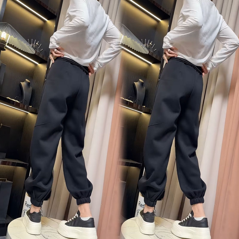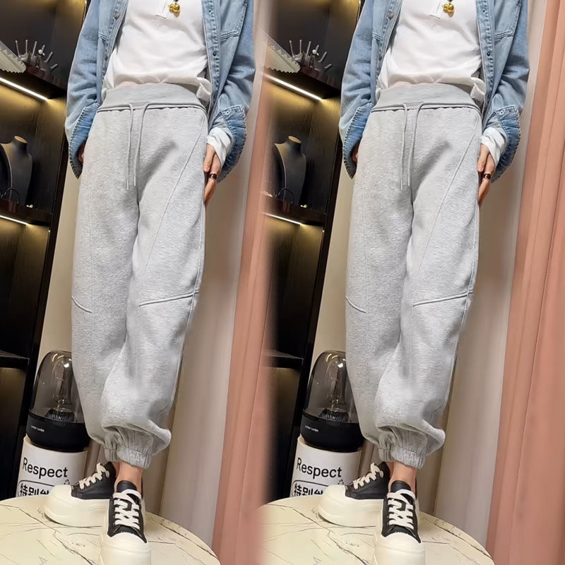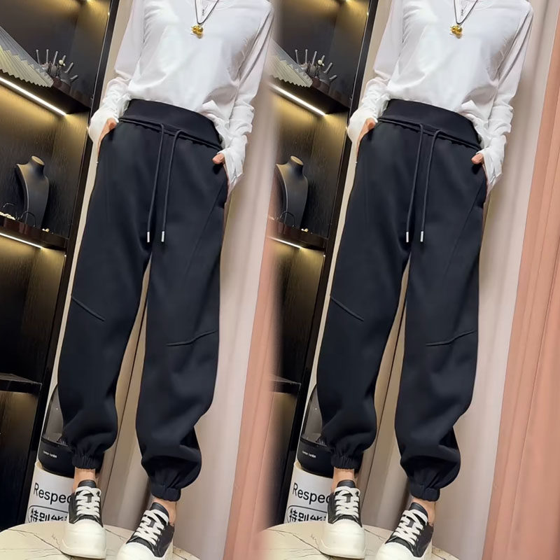 纯色休闲卫裤2025加绒新款时尚宽松百搭简约松紧高腰抽绳哈伦裤