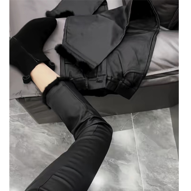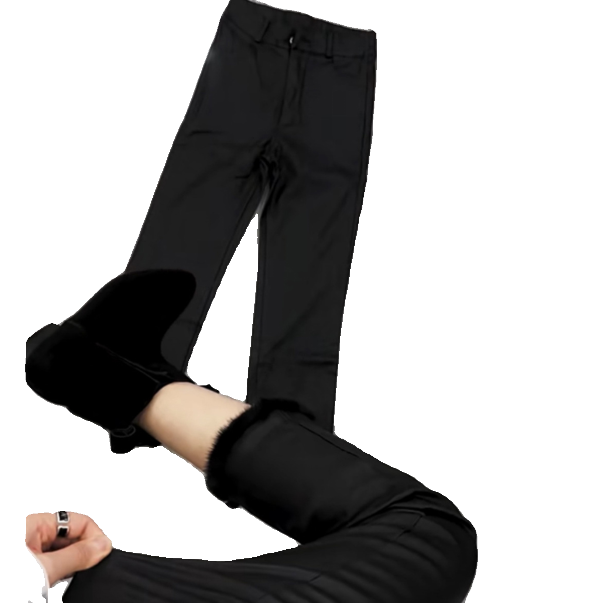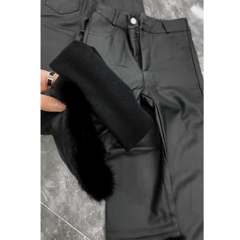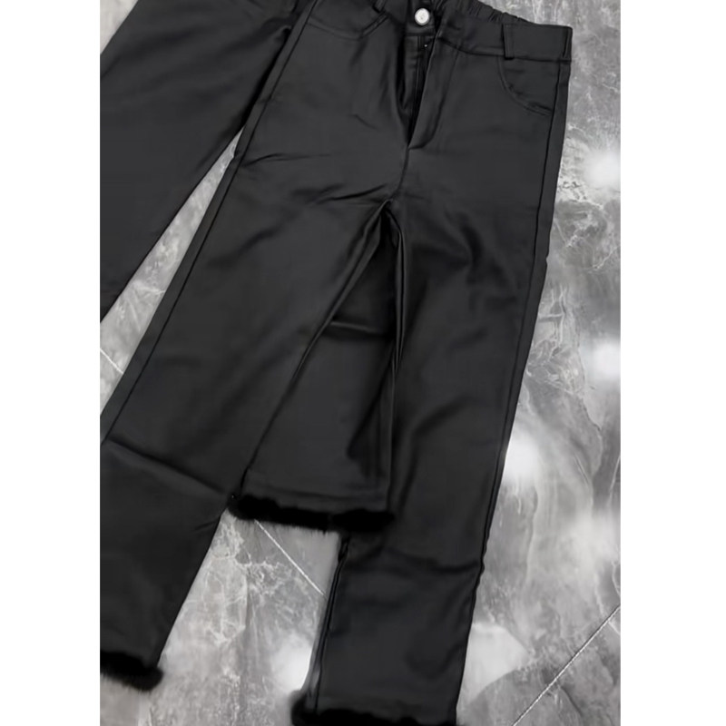 2025春秋新款加绒涂层裤子女毛毛腿直筒微喇九分烟管裤休闲裤女