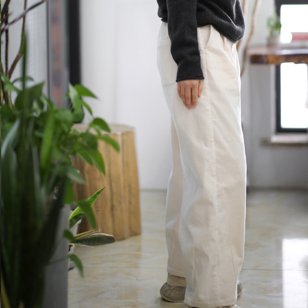 游设计原创纯棉条绒宽松收裤脚休闲裤长裤 素者