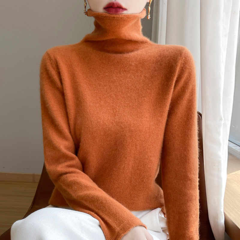秋冬装100%纯羊毛衫女堆堆领毛衣百搭高领大码针织打底绒衫配大衣