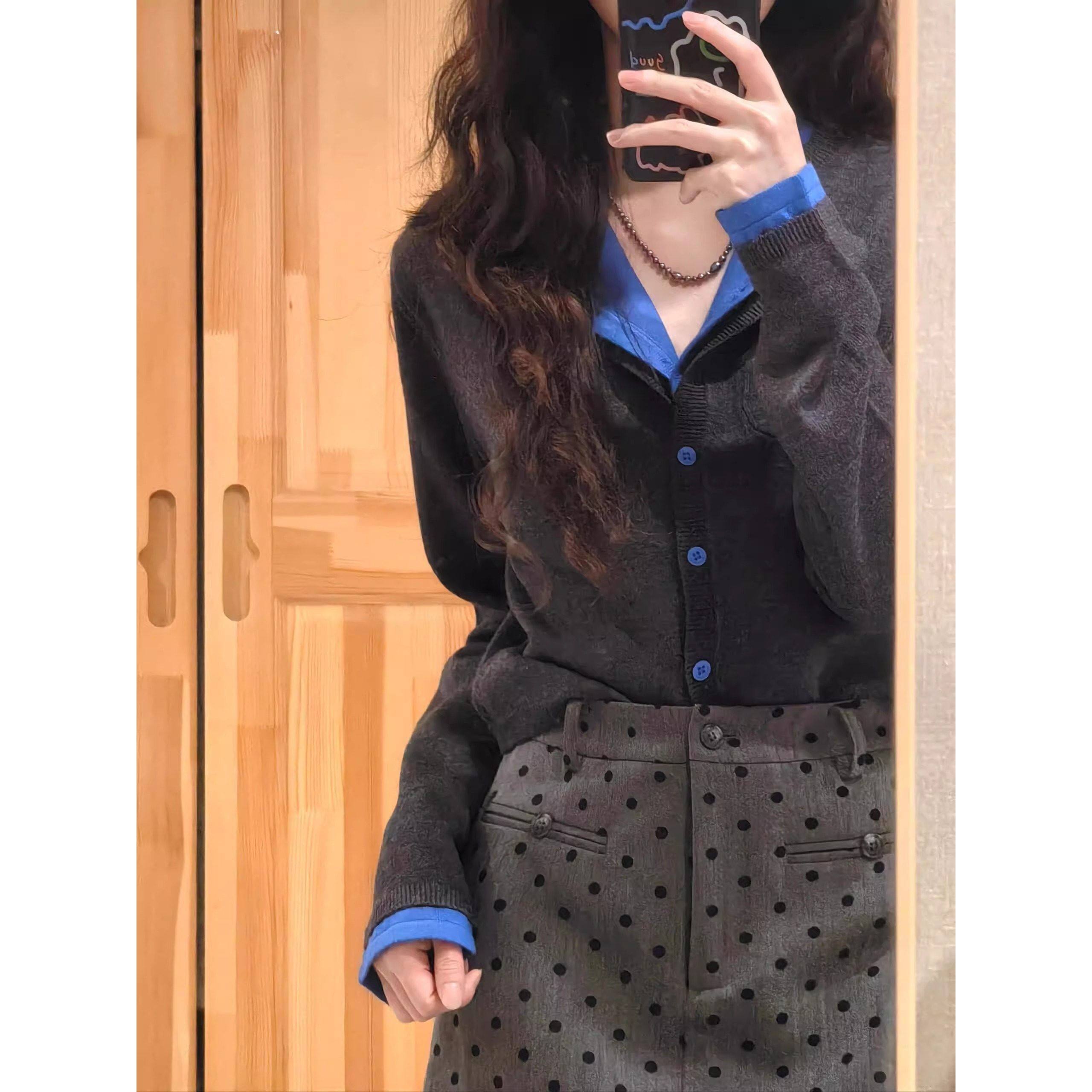 法国Rixo Rane ⭐撞色假两件针织衫女毛衣软糯开衫覆古长袖上衣潮