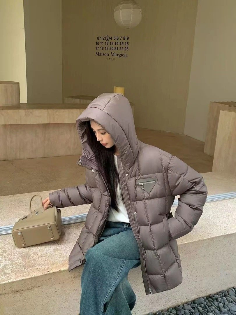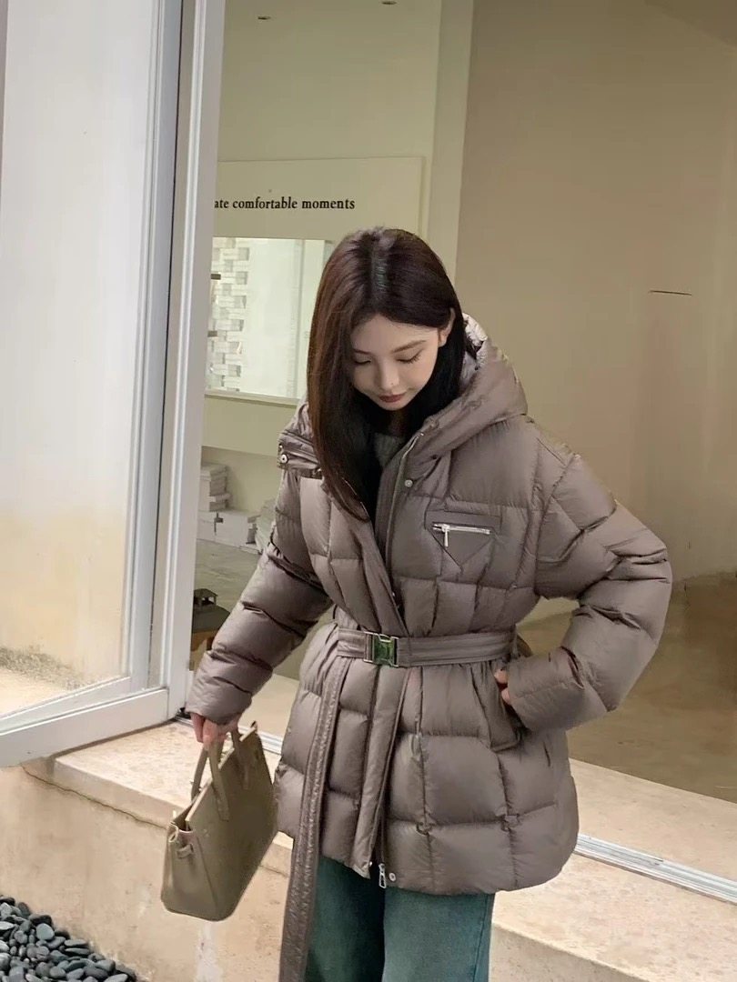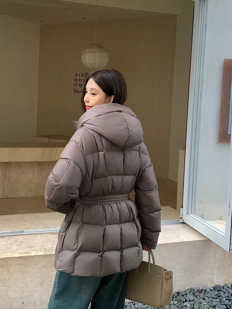 88001女薄款中长款长款百搭时尚防水羽绒服连帽显瘦冬季