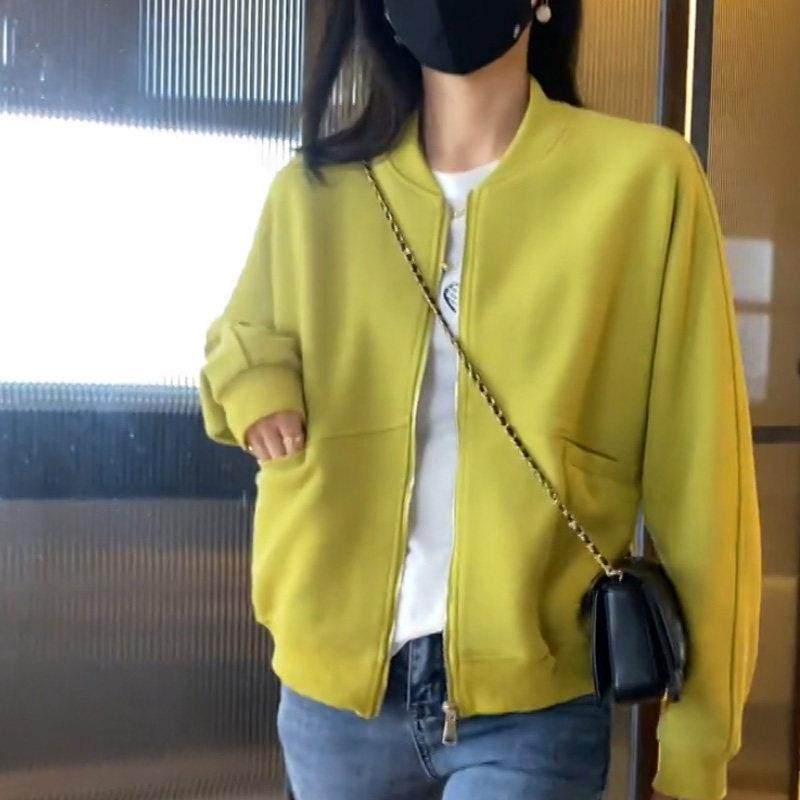 香港棒球服卫衣外套女2023春秋新款小个子宽松百搭圆领短款开衫潮