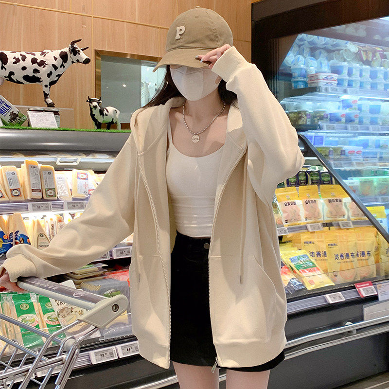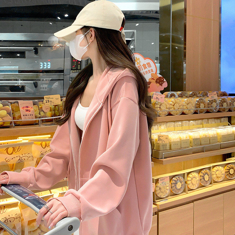 早秋外套女春秋款2025新款爆款韩系连帽秋季卫衣女款灰色开衫上衣