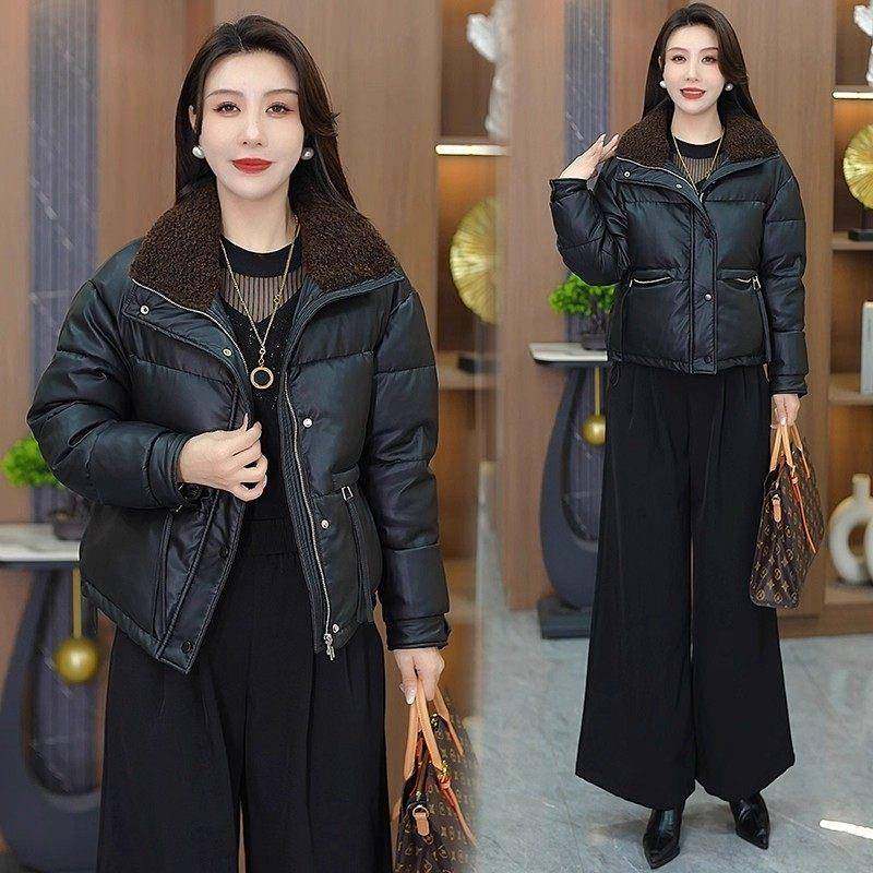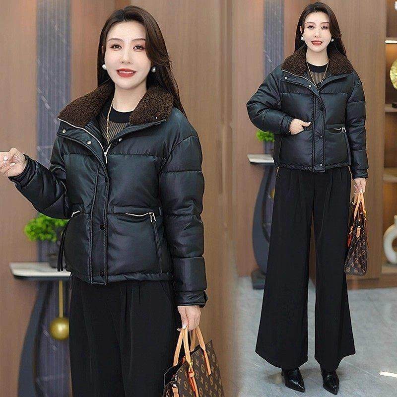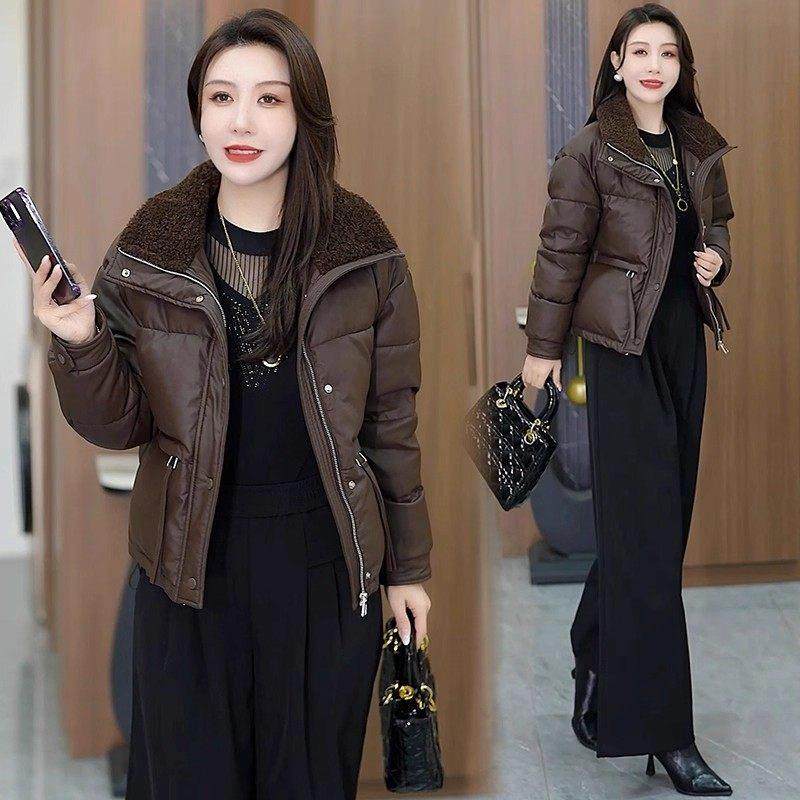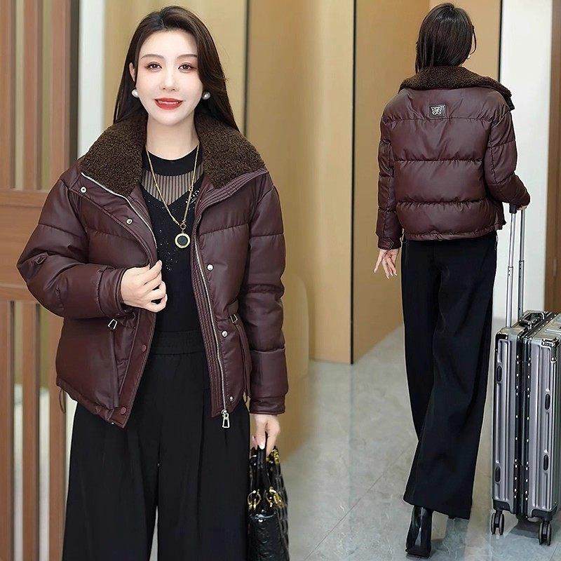 香港代购妈妈装时尚短款皮棉衣女冬季洋气宽松保暖面包服棉袄外套