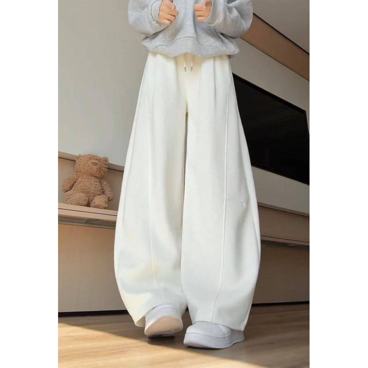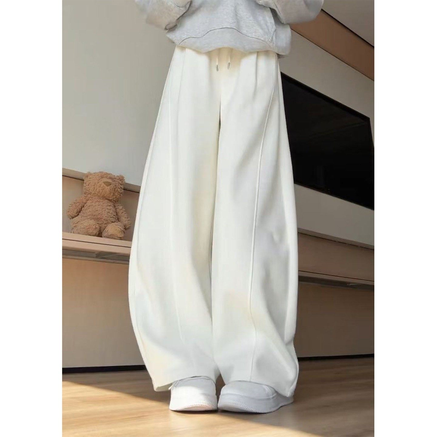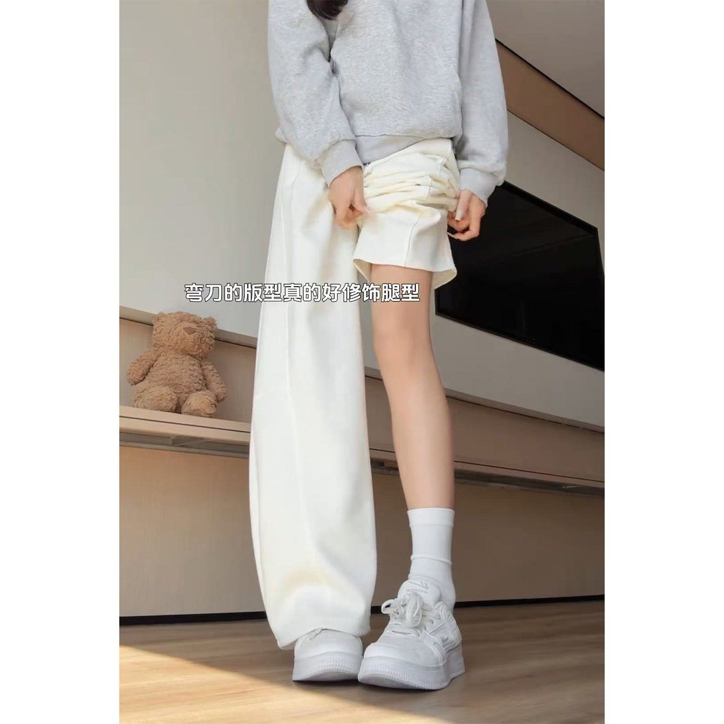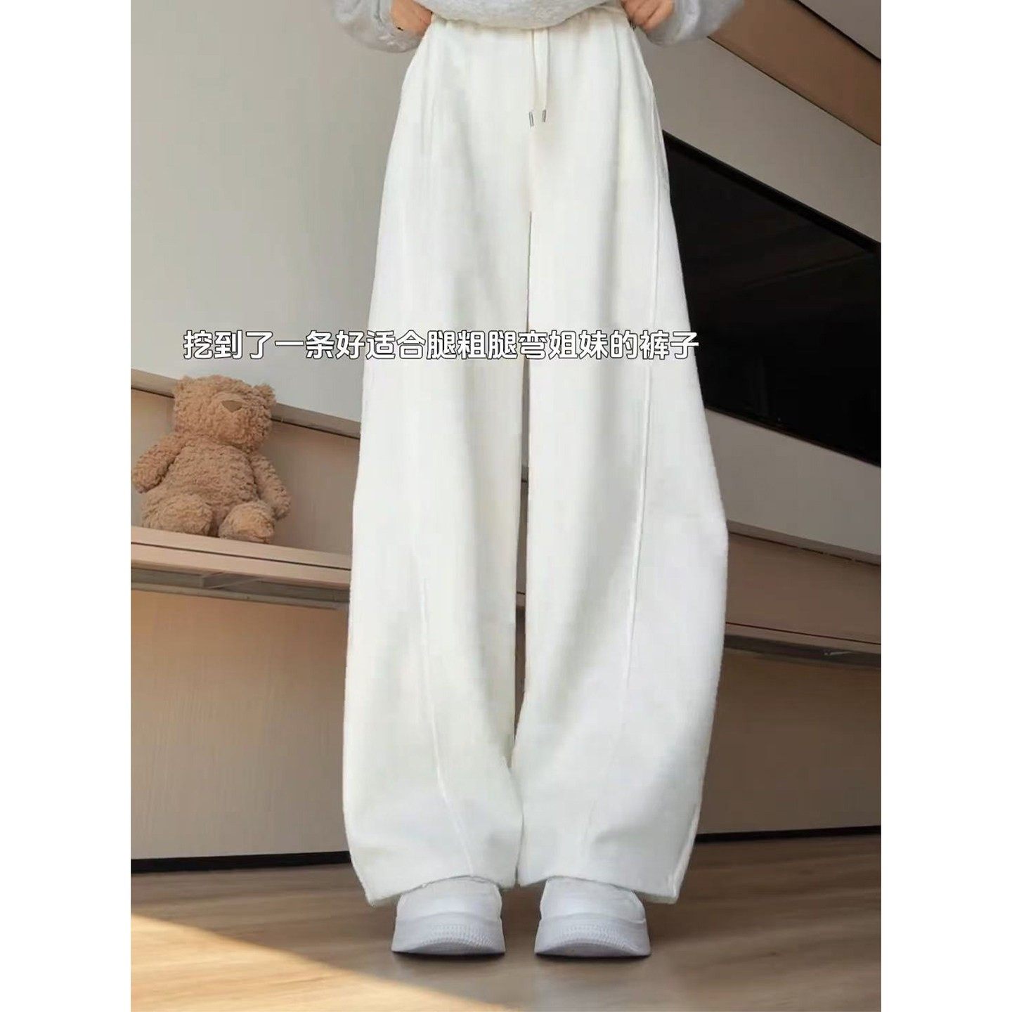 米白色高腰阔腿加绒糯米裤女2025秋冬新款大码宽松显瘦垂感拖地裤