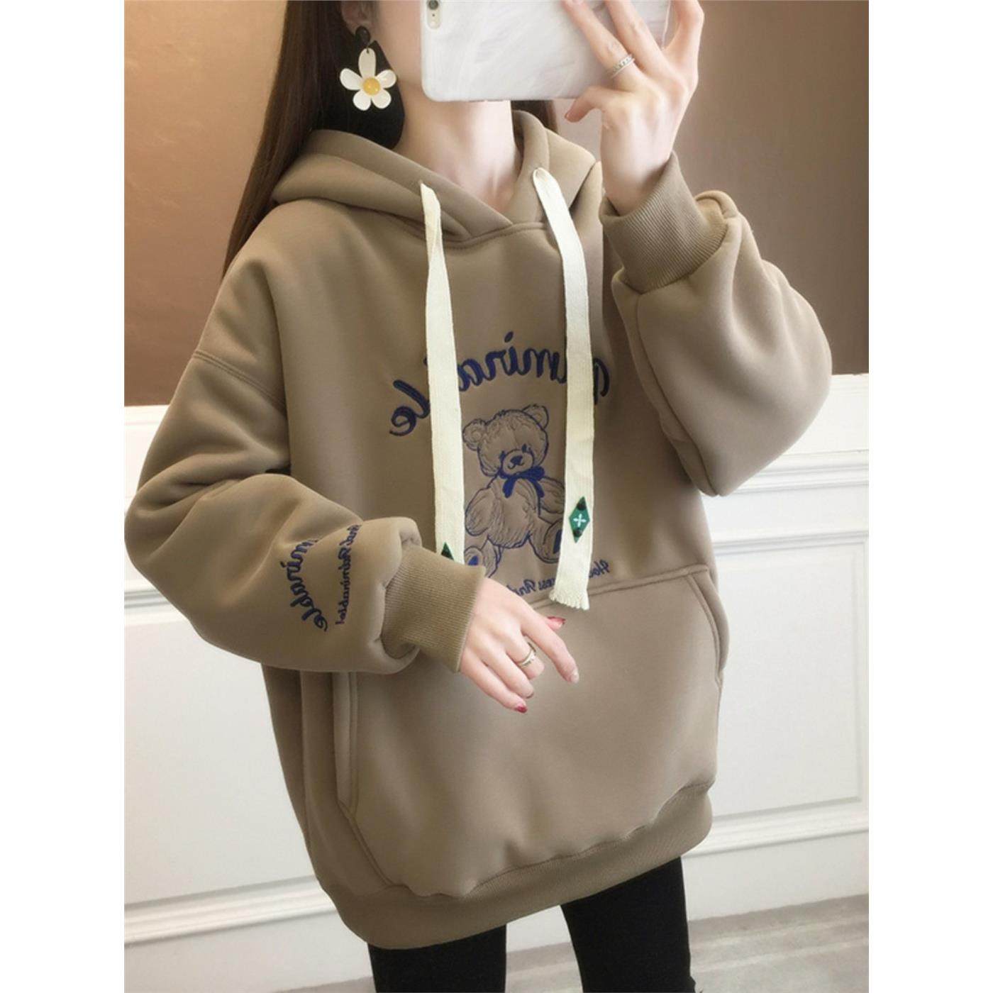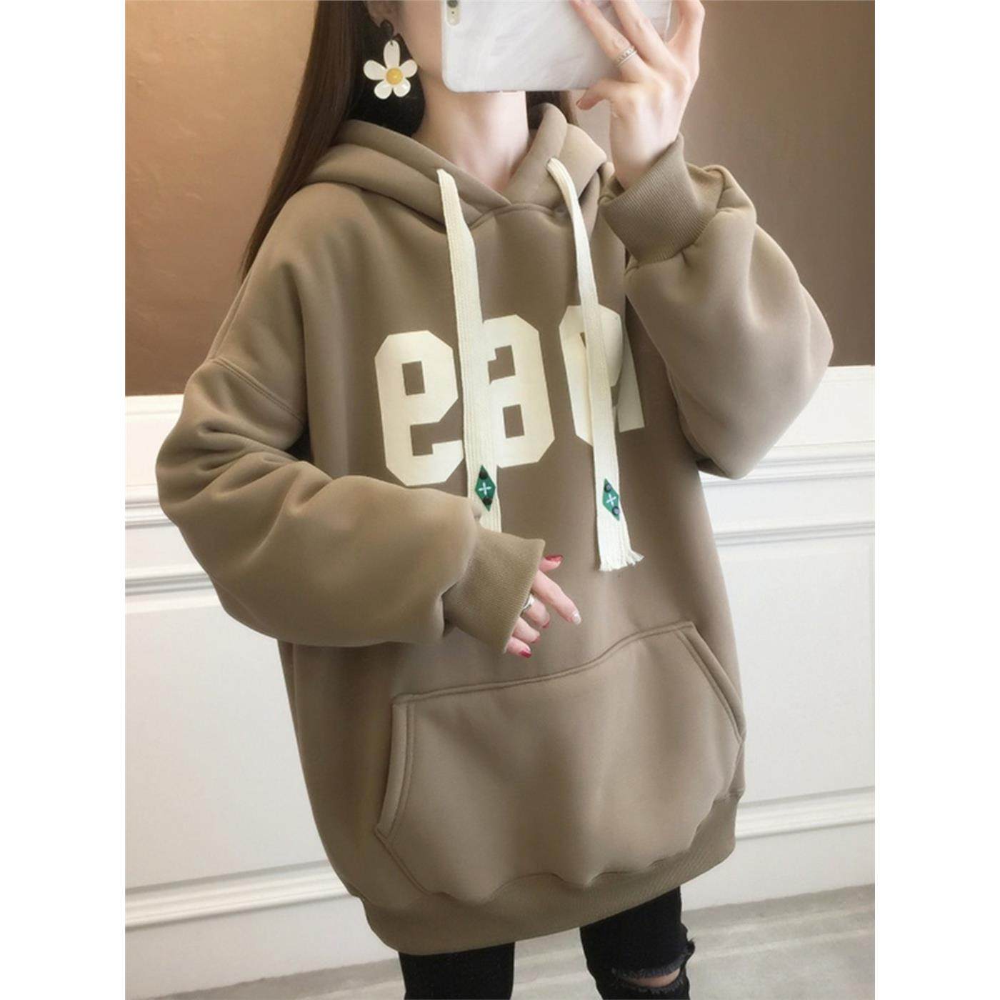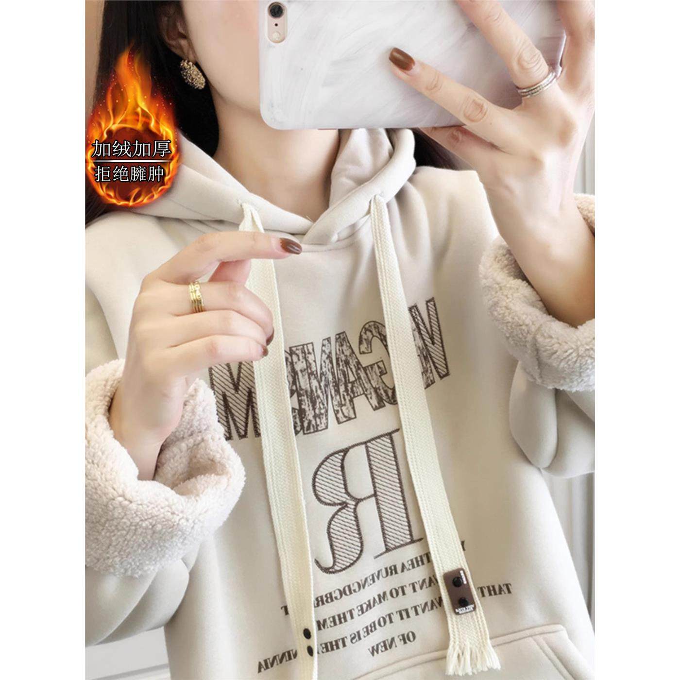 秋装女士中长款加绒加厚卫衣女春秋2025新款爆款时尚洋气连帽上衣