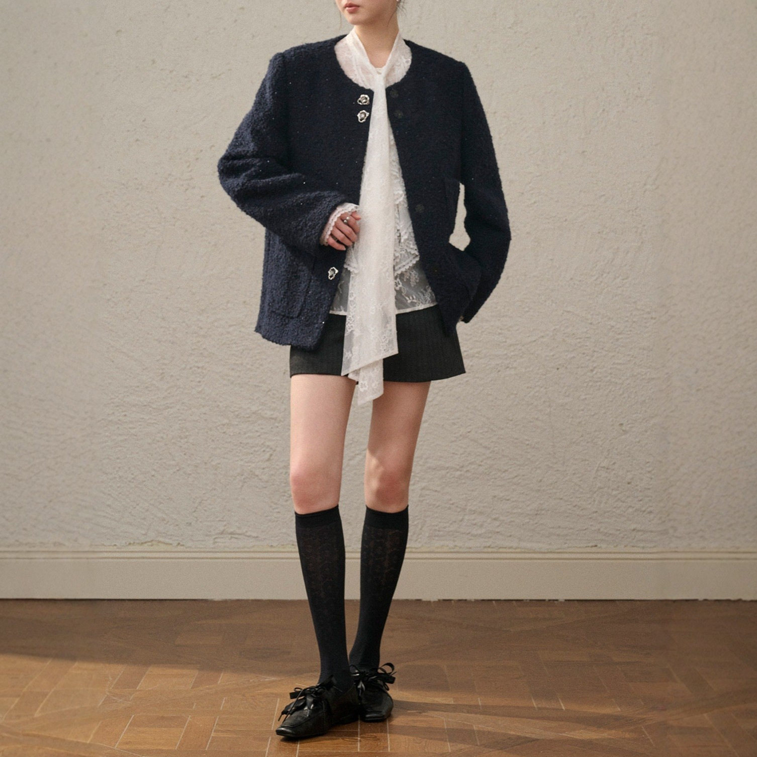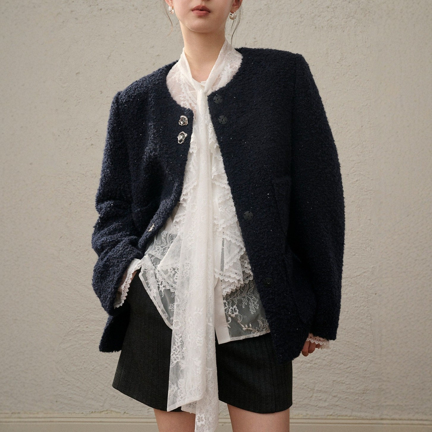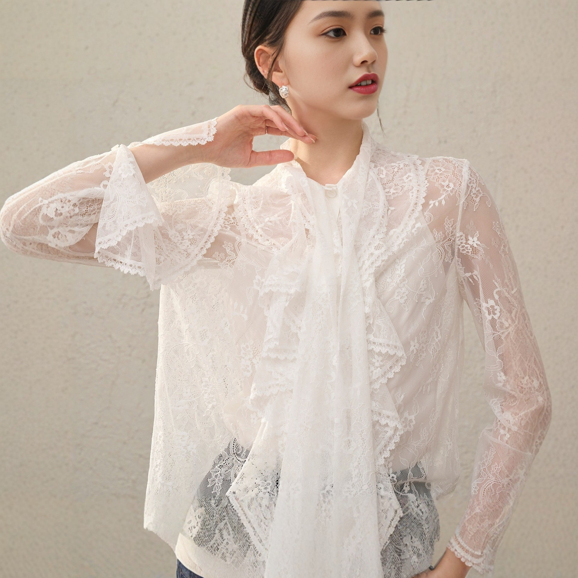 2026春夏新款两件套胧纱蕾丝立体花卉荷叶边小衫智性多季搭配衬衫