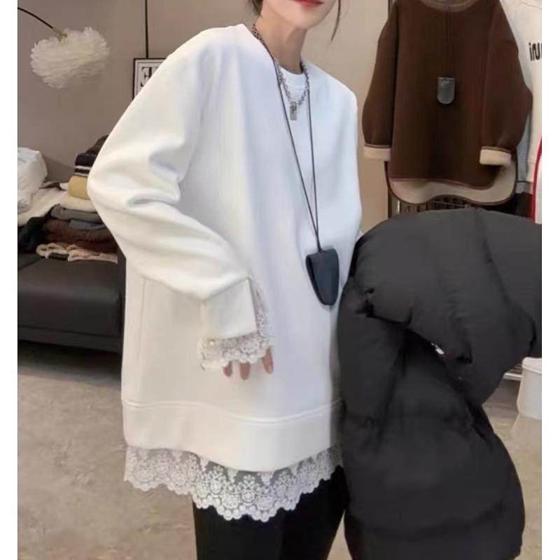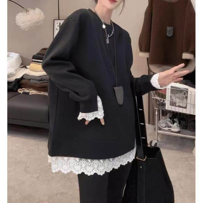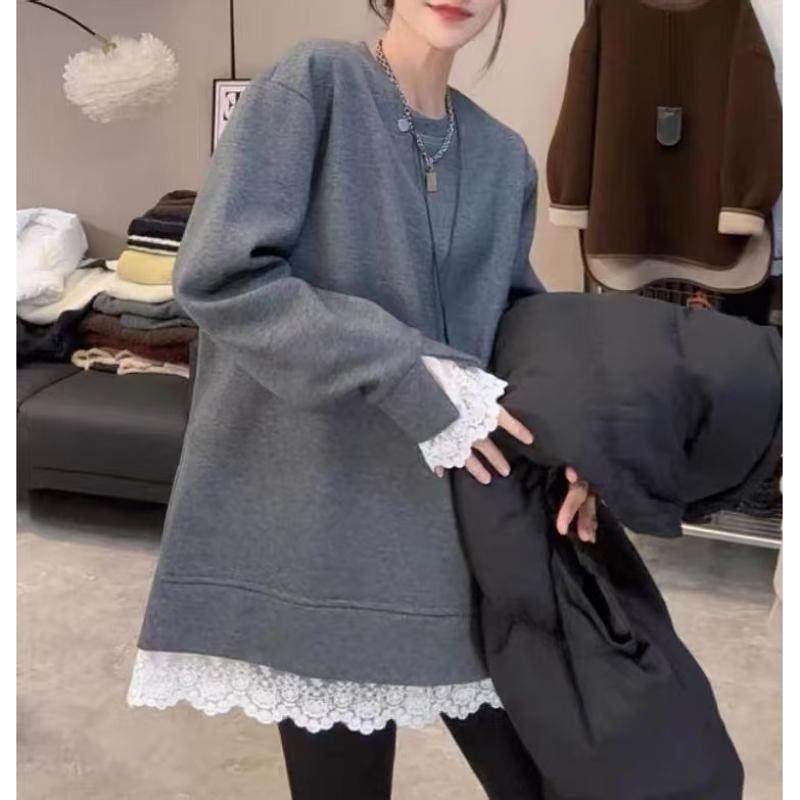 香港圆领加绒卫衣女秋冬2025新款大码胖mm慵懒风假两件中长款上衣