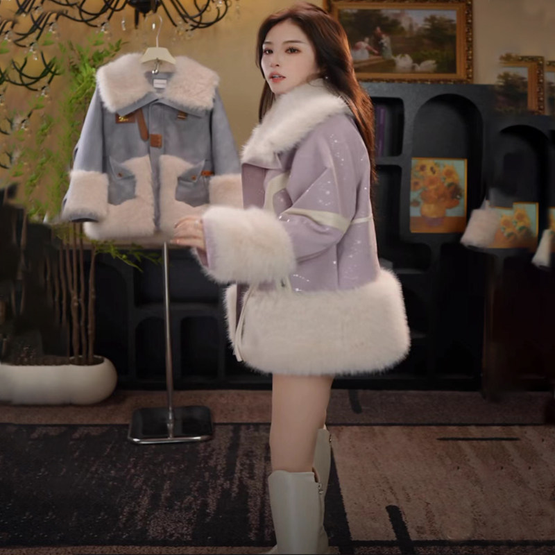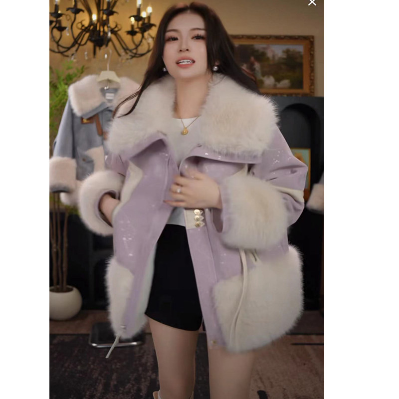 海宁皮衣中长款女冬季皮草仿狐狸毛领时尚显瘦加厚保暖外套加绒