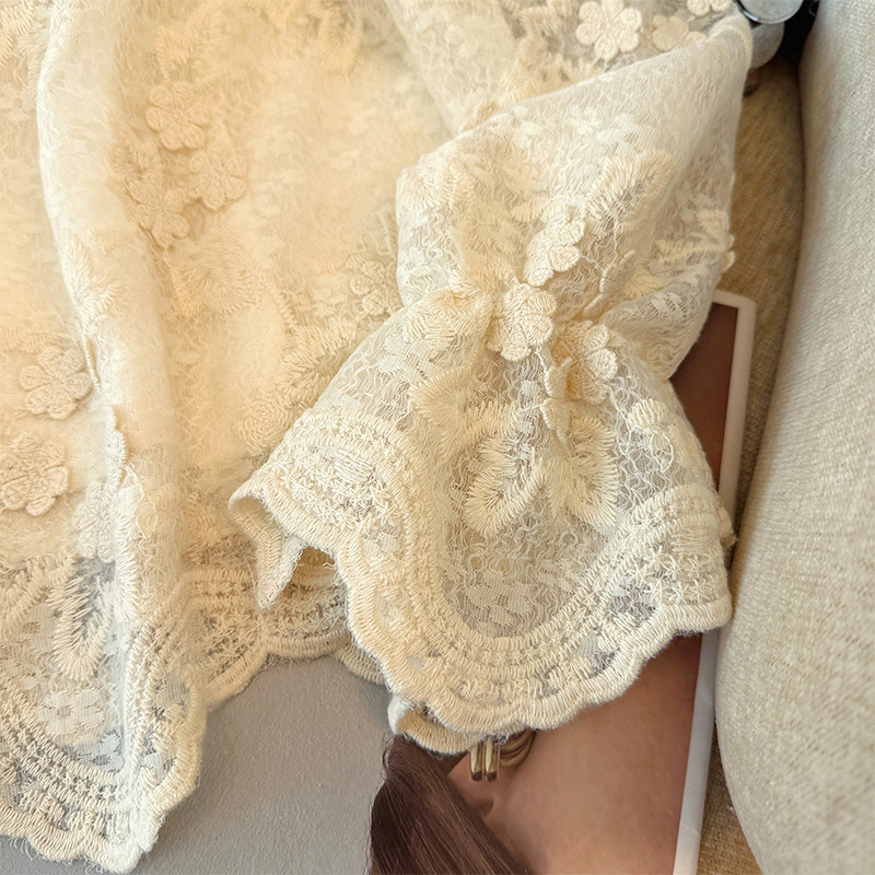 翻领法式荷叶边圆领镂空勾花磨毛蕾丝打底衫喇叭袖衬衫内搭花边领