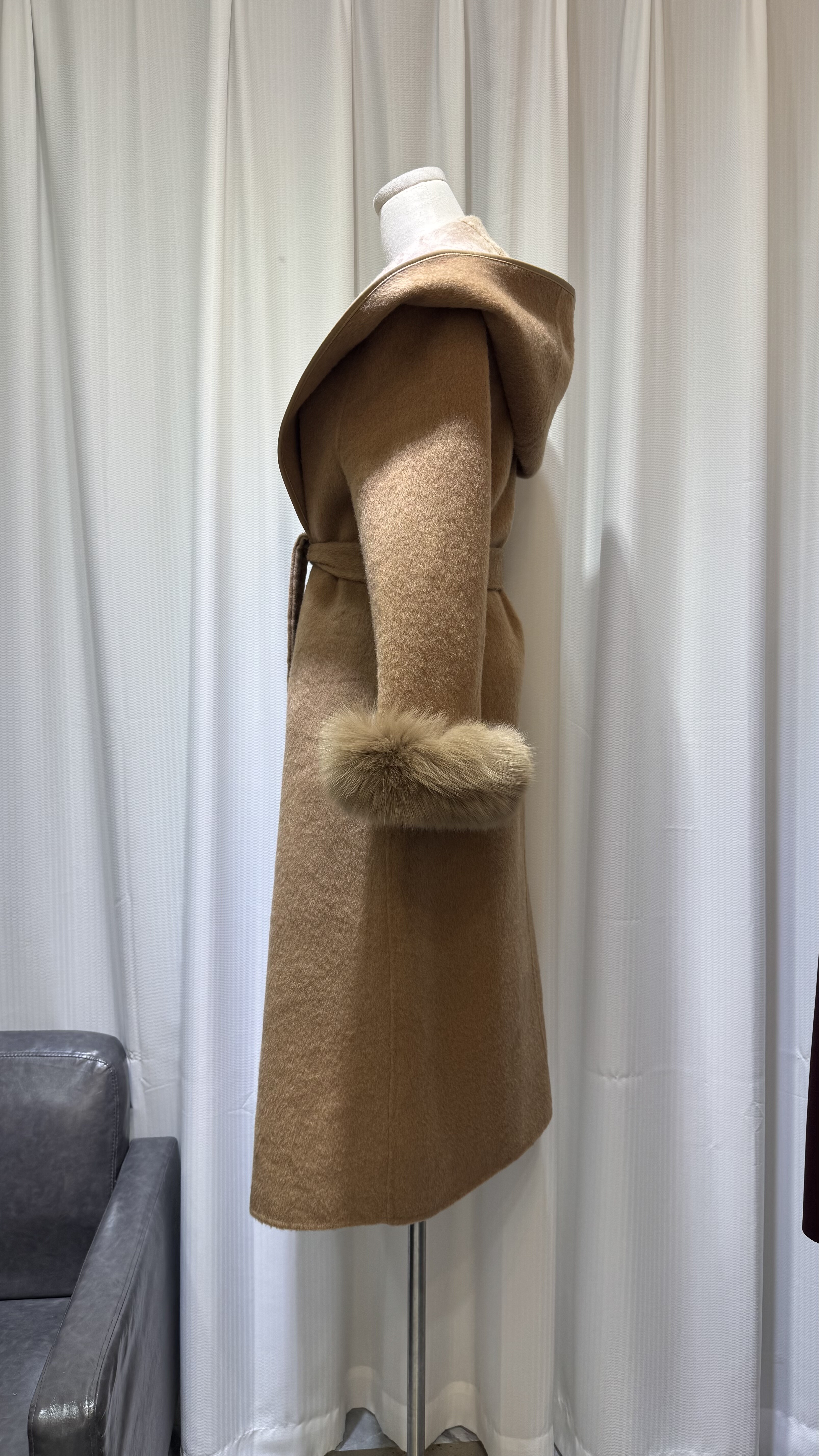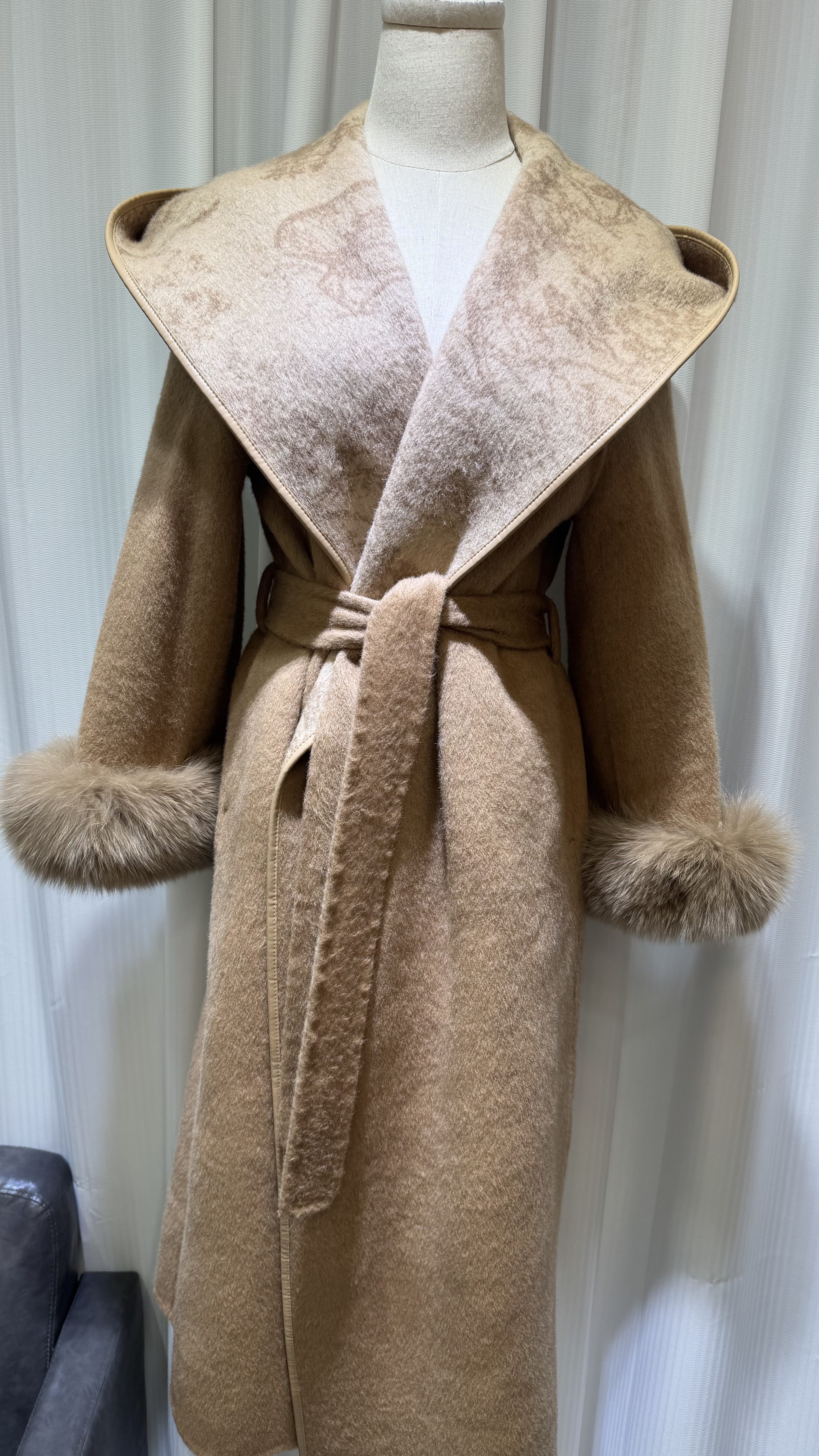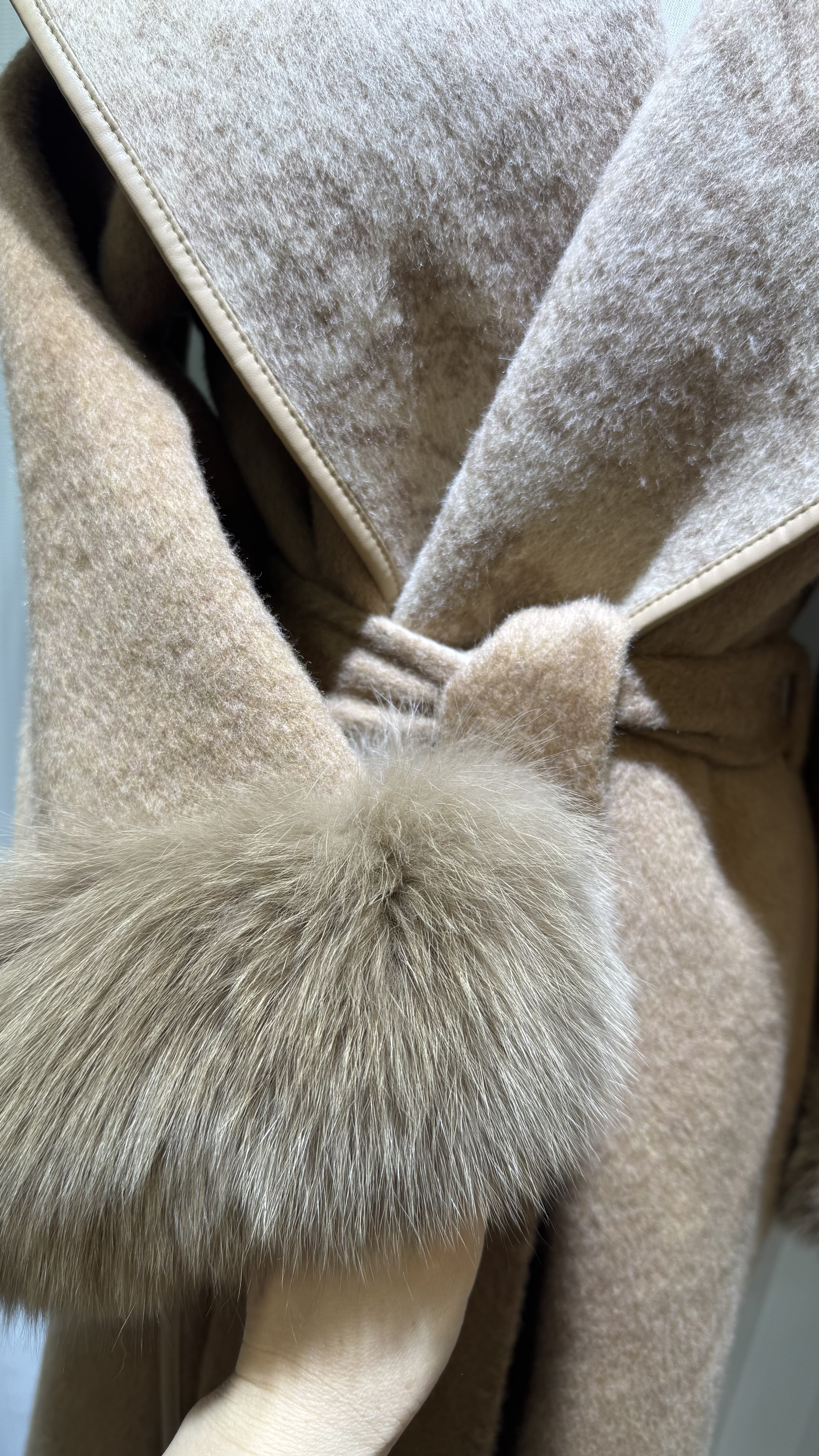 秋冬新款双面羊绒大衣大翻领长款狐狸毛皮草100澳洲超细羊毛外套