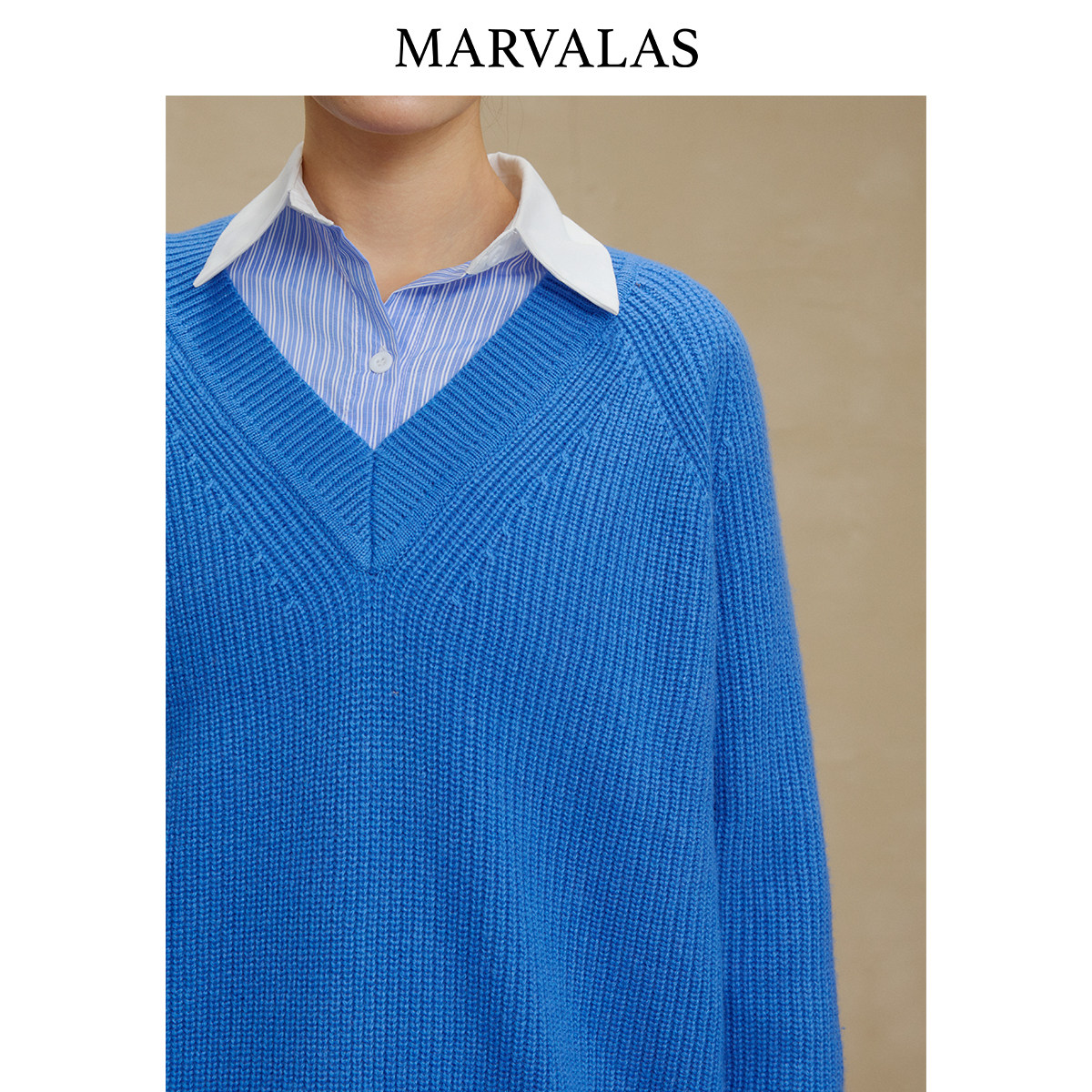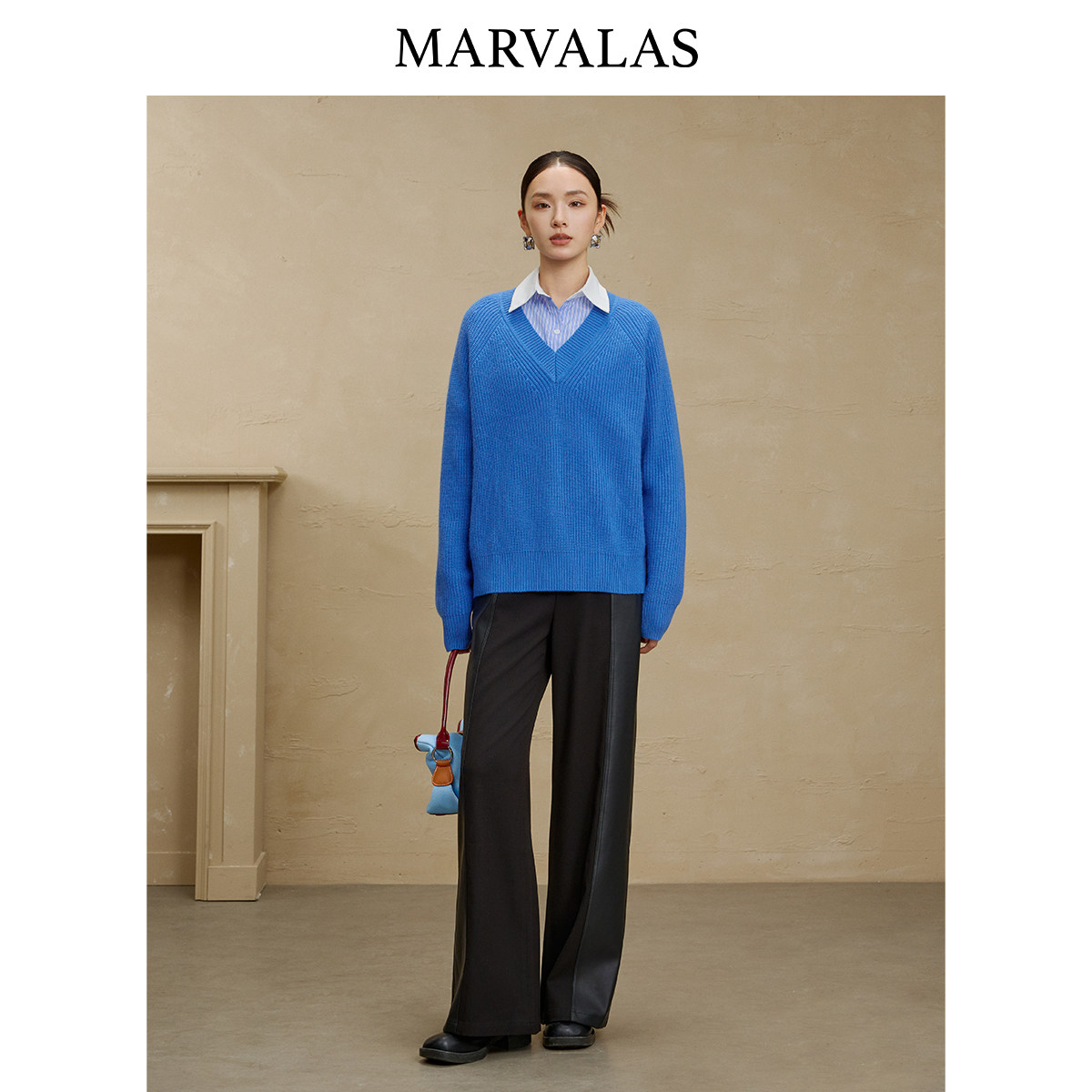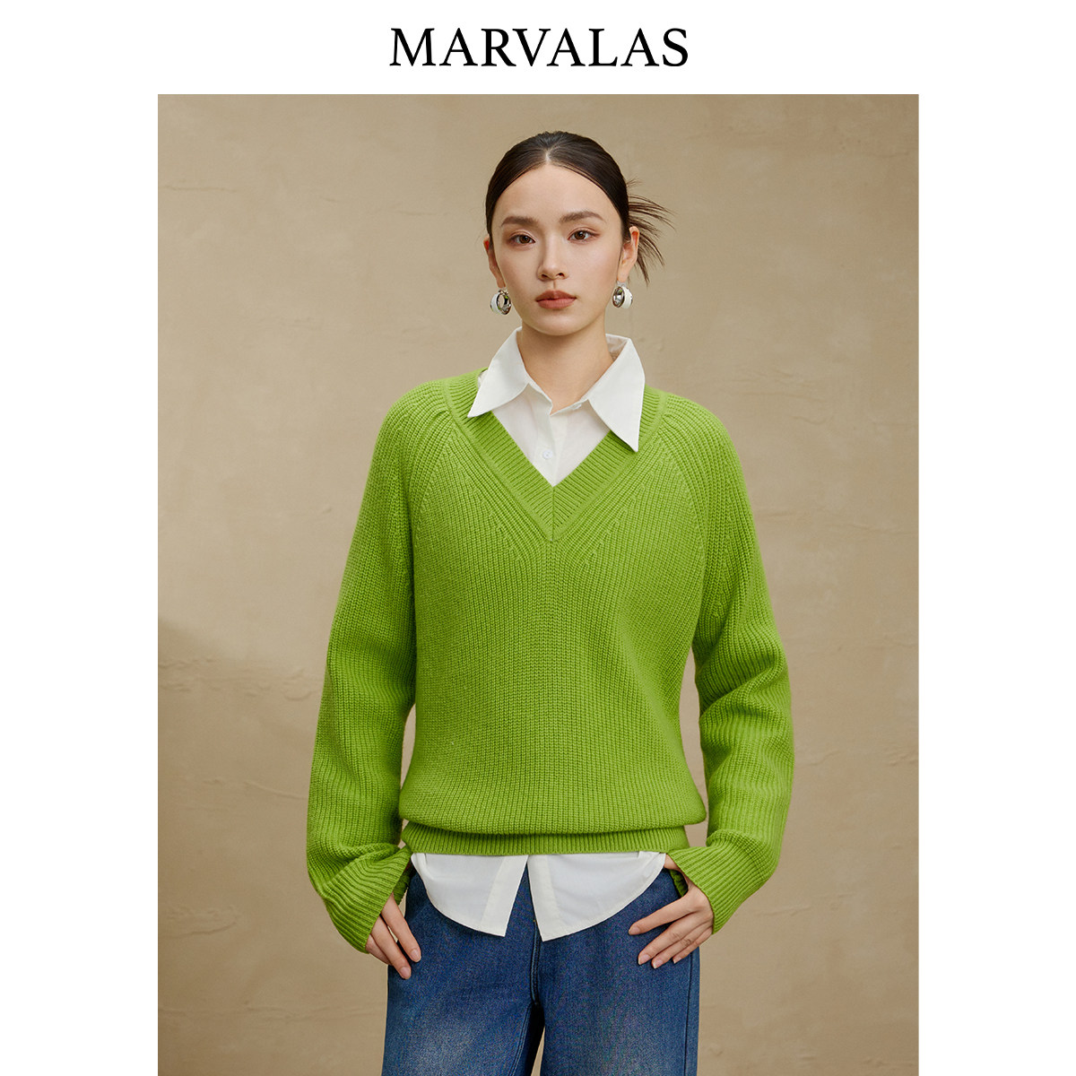 【粉丝专属】曼德诗绵羊毛混纺套头衫2025冬季新款纯色V领