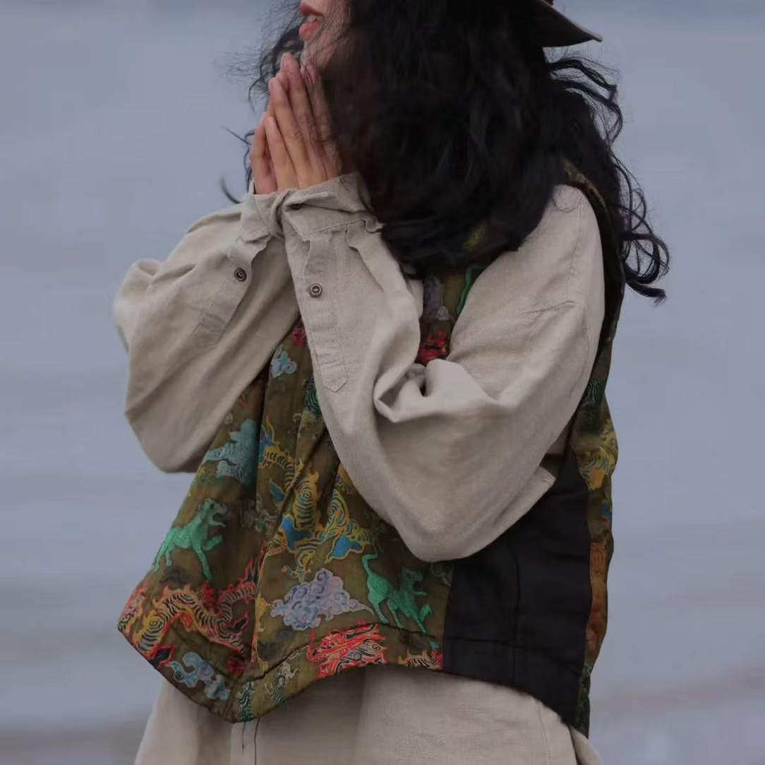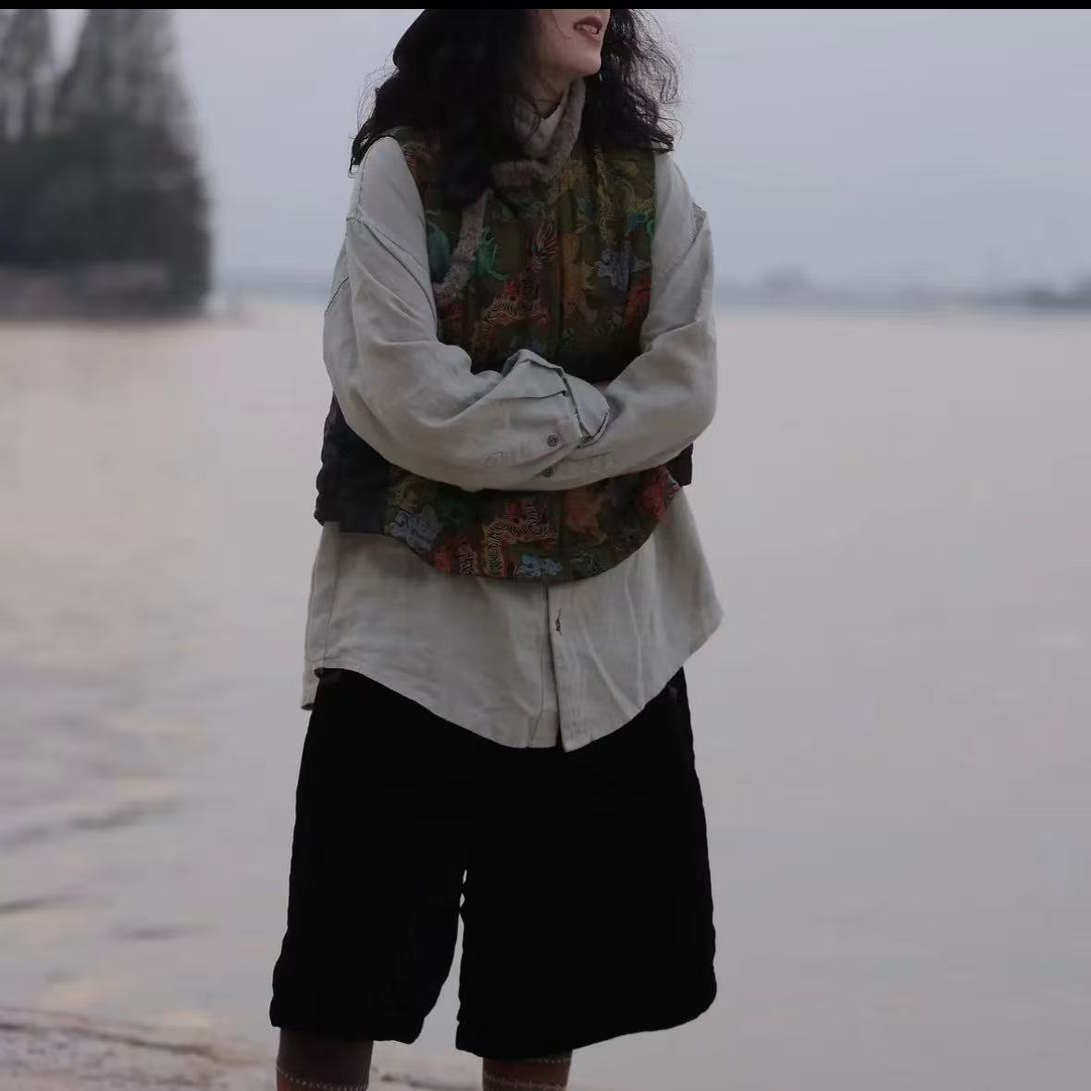 古蘭木-原创复古立领花色棉马甲7377(衣长57胸围125)