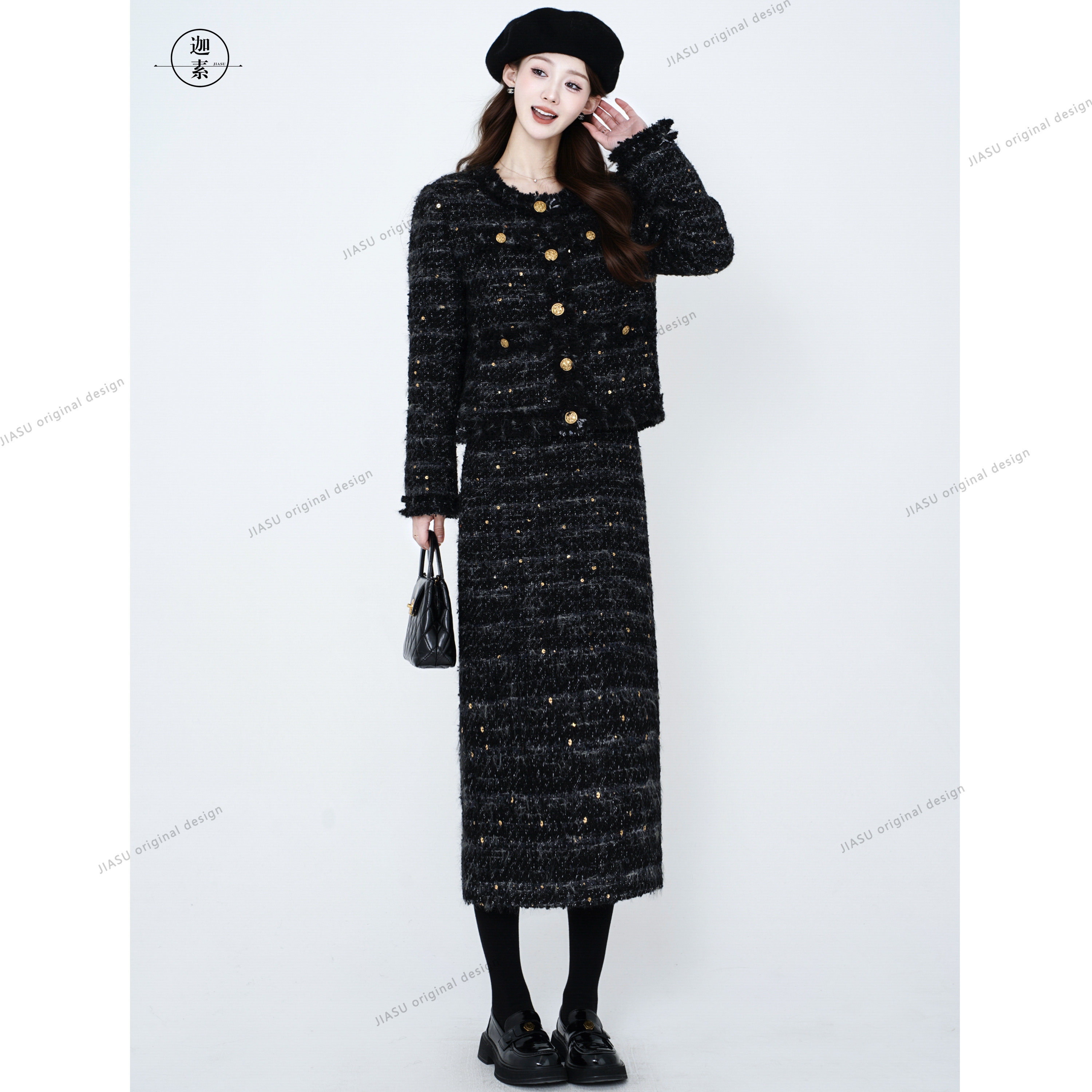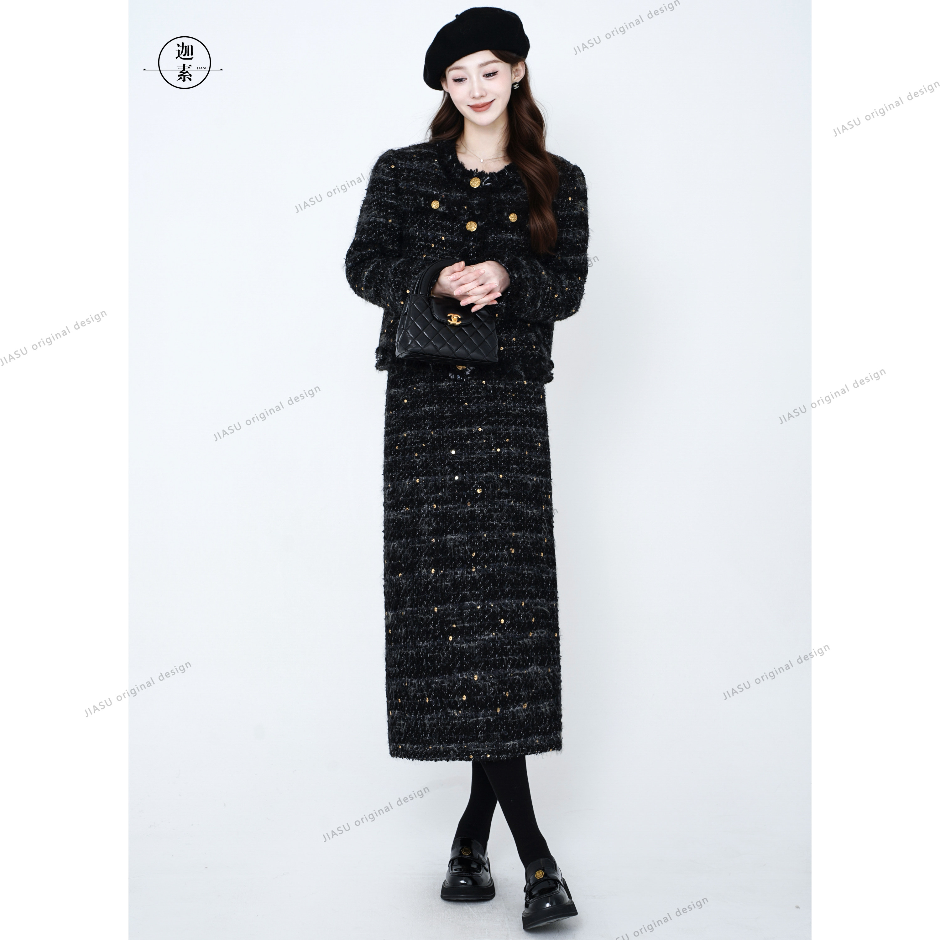 JIASU 【香榭丽舍】20羊毛特调粗花呢羊毛小香风羽绒套装S597