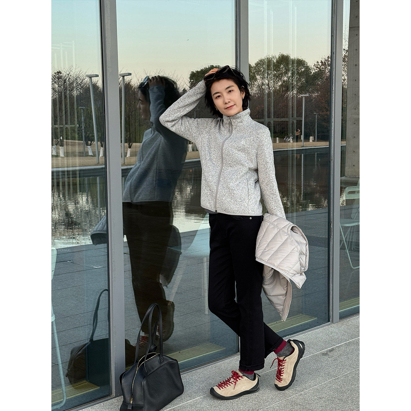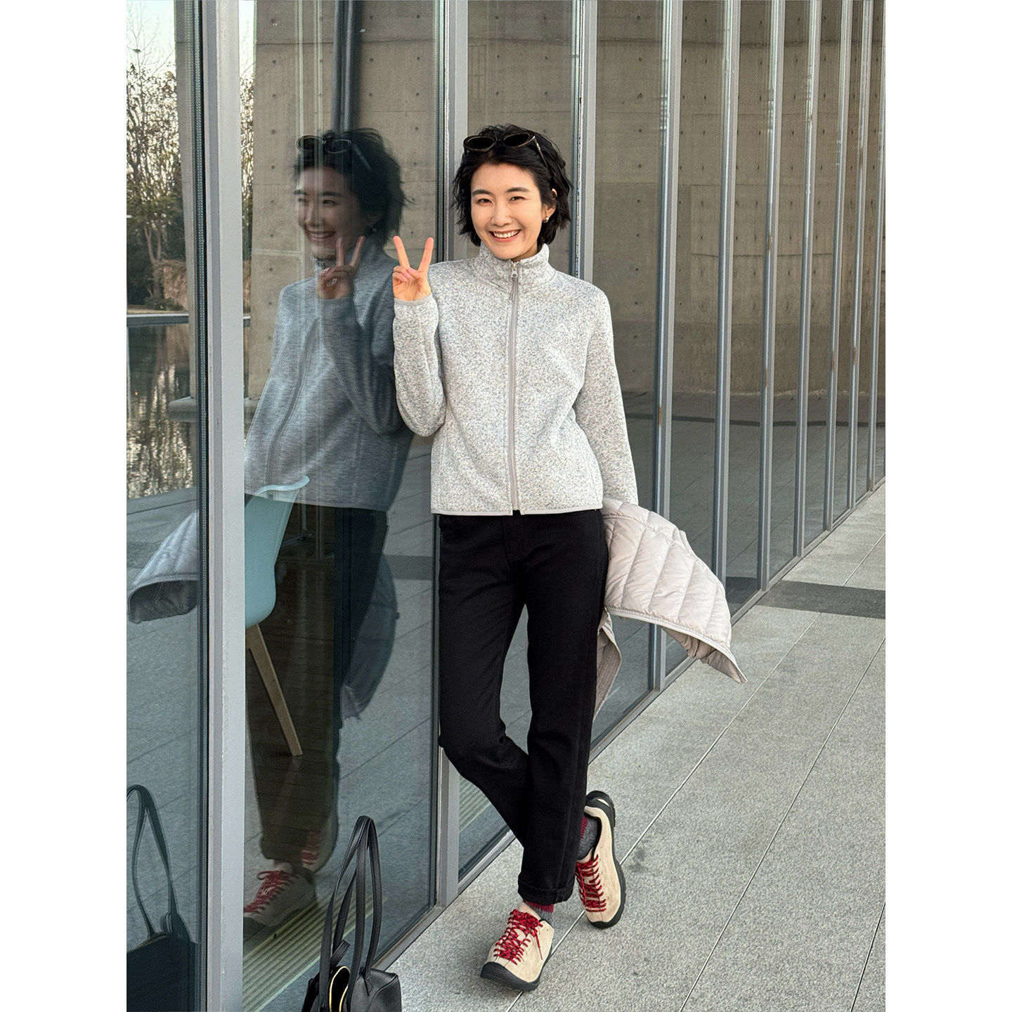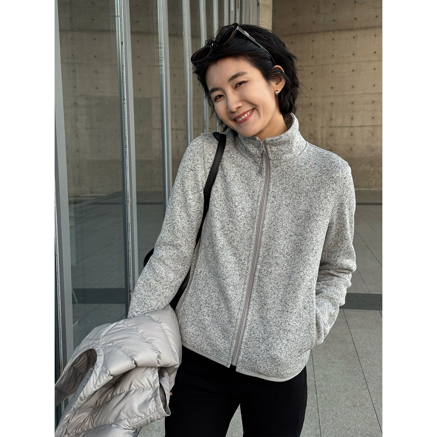 浪清灰色修身加绒卫衣外套女2025新款冬季加厚保暖开衫内胆抓绒衣
