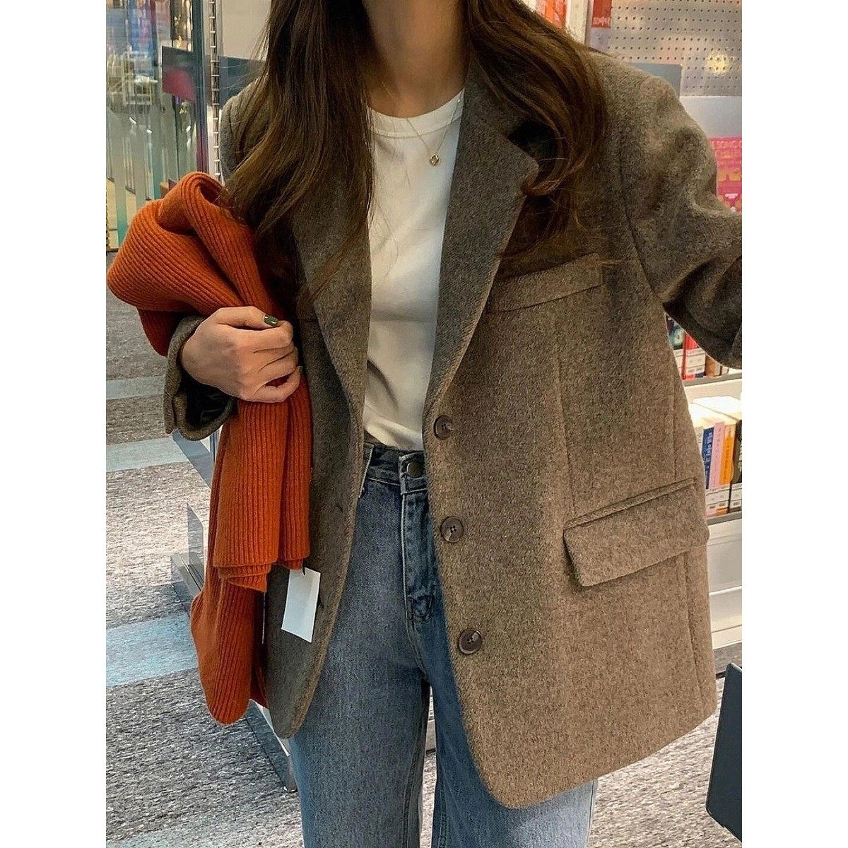 小西装毛呢外套女2024秋冬新款呢子大衣小个子短款高级感韩系上衣