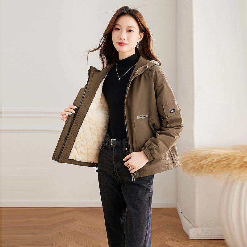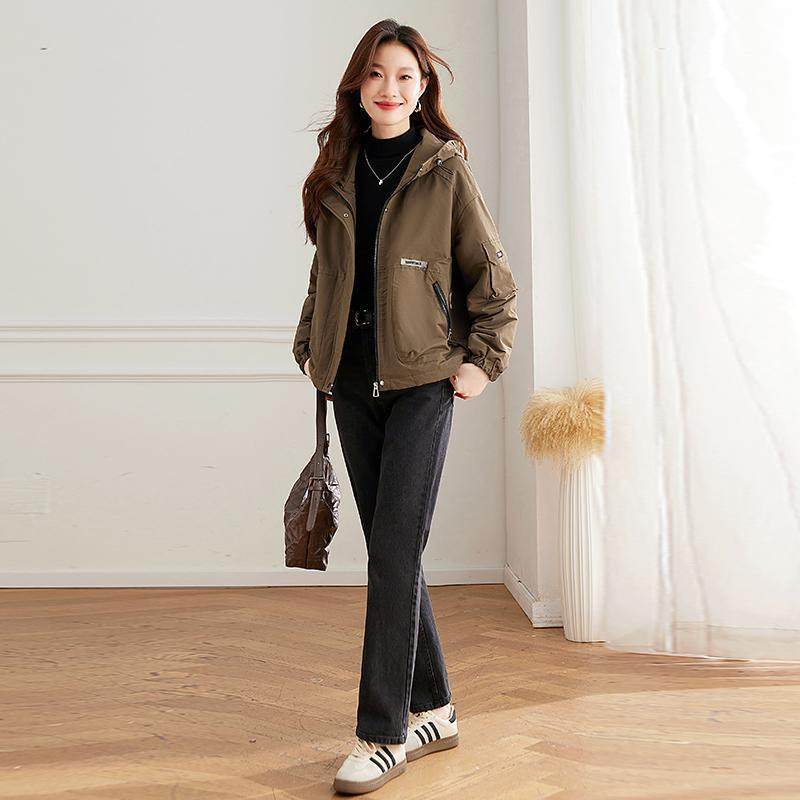 连帽短款外套女小个子2025春季新款高级感休闲 风衣时尚加绒派克