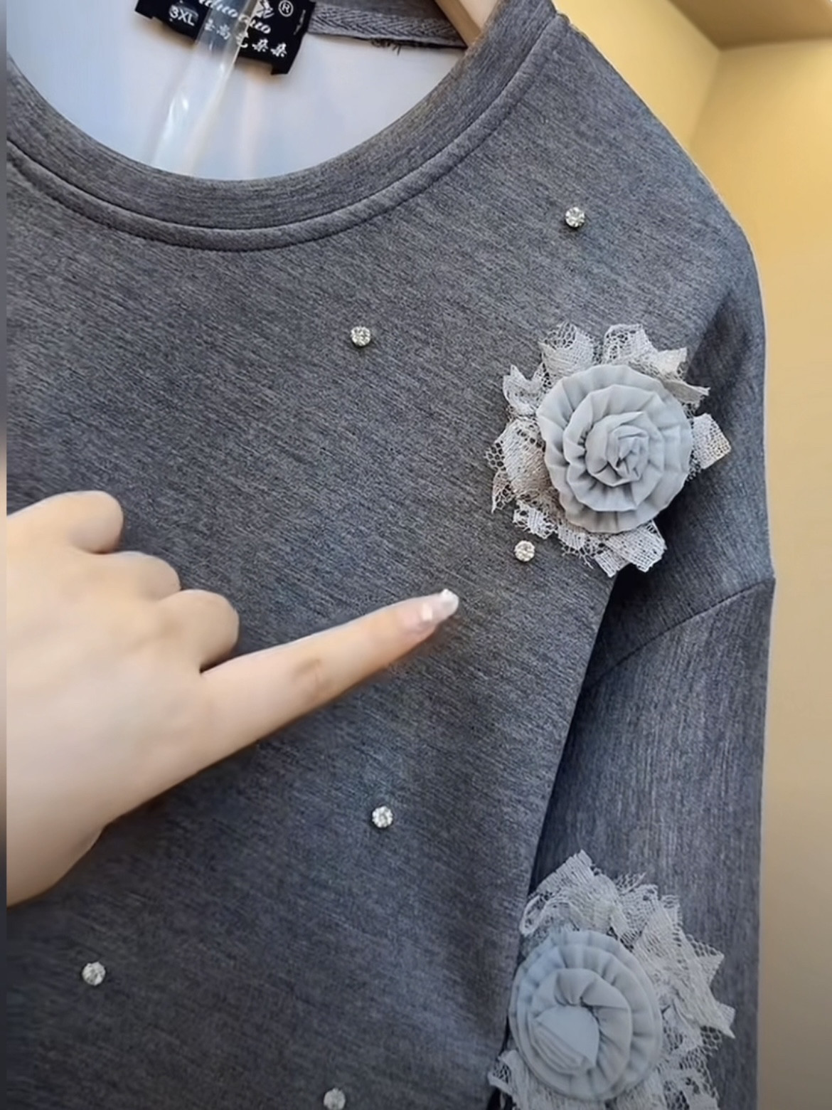 秋冬大码立体花朵短袖上衣宽松中长款遮肉T恤洋气内搭减龄