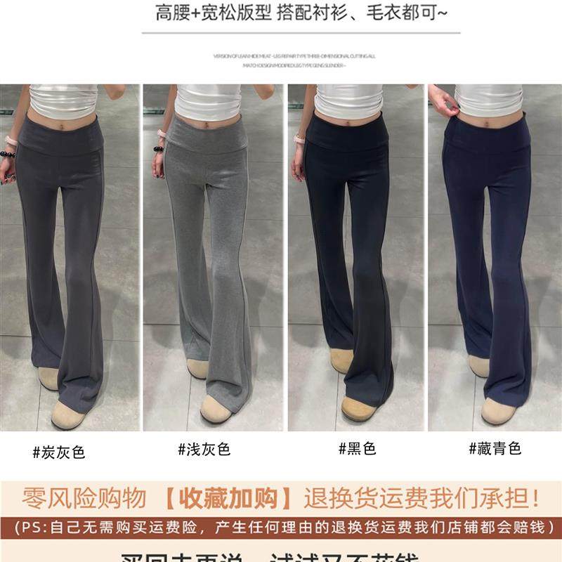 灰色加绒微喇裤女秋冬2025新款低腰修身显瘦垂感瑜伽喇叭运动卫裤