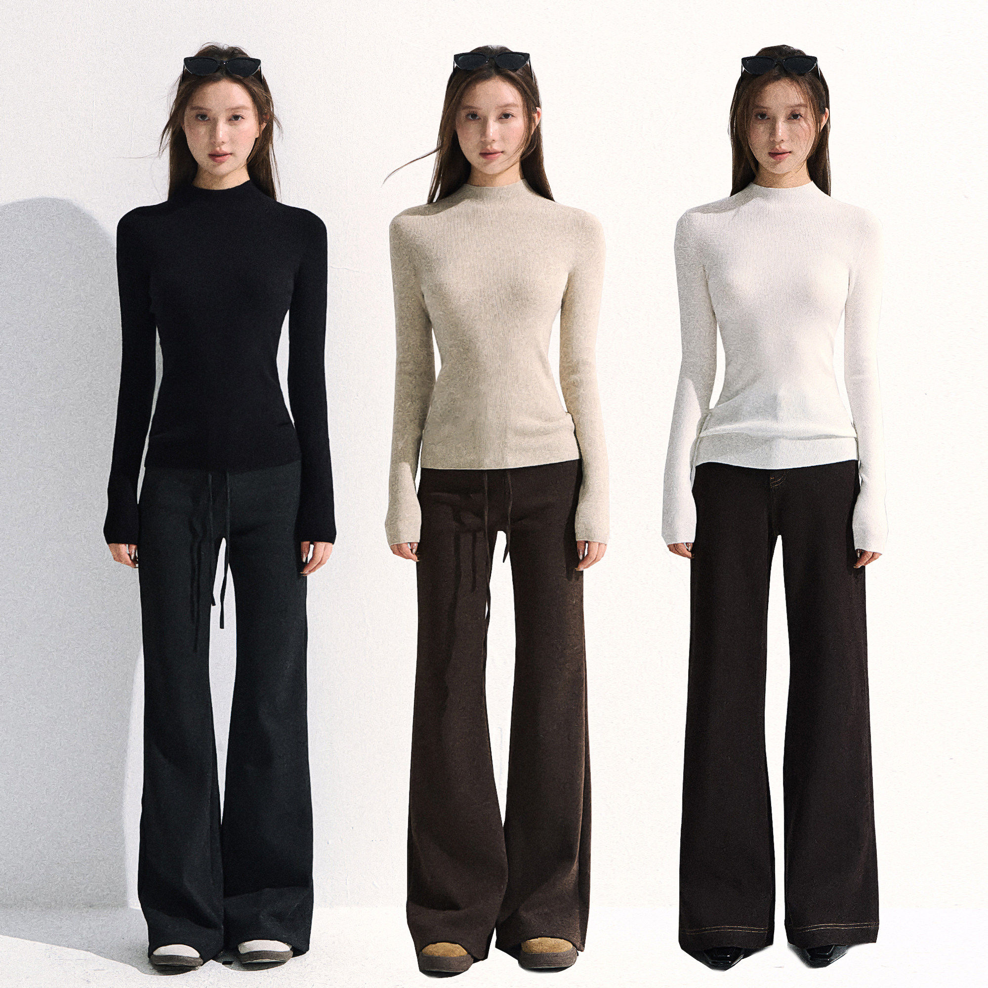 101PASSION半高领针织毛衣打底衫女秋冬内搭正肩修身显瘦长袖上衣