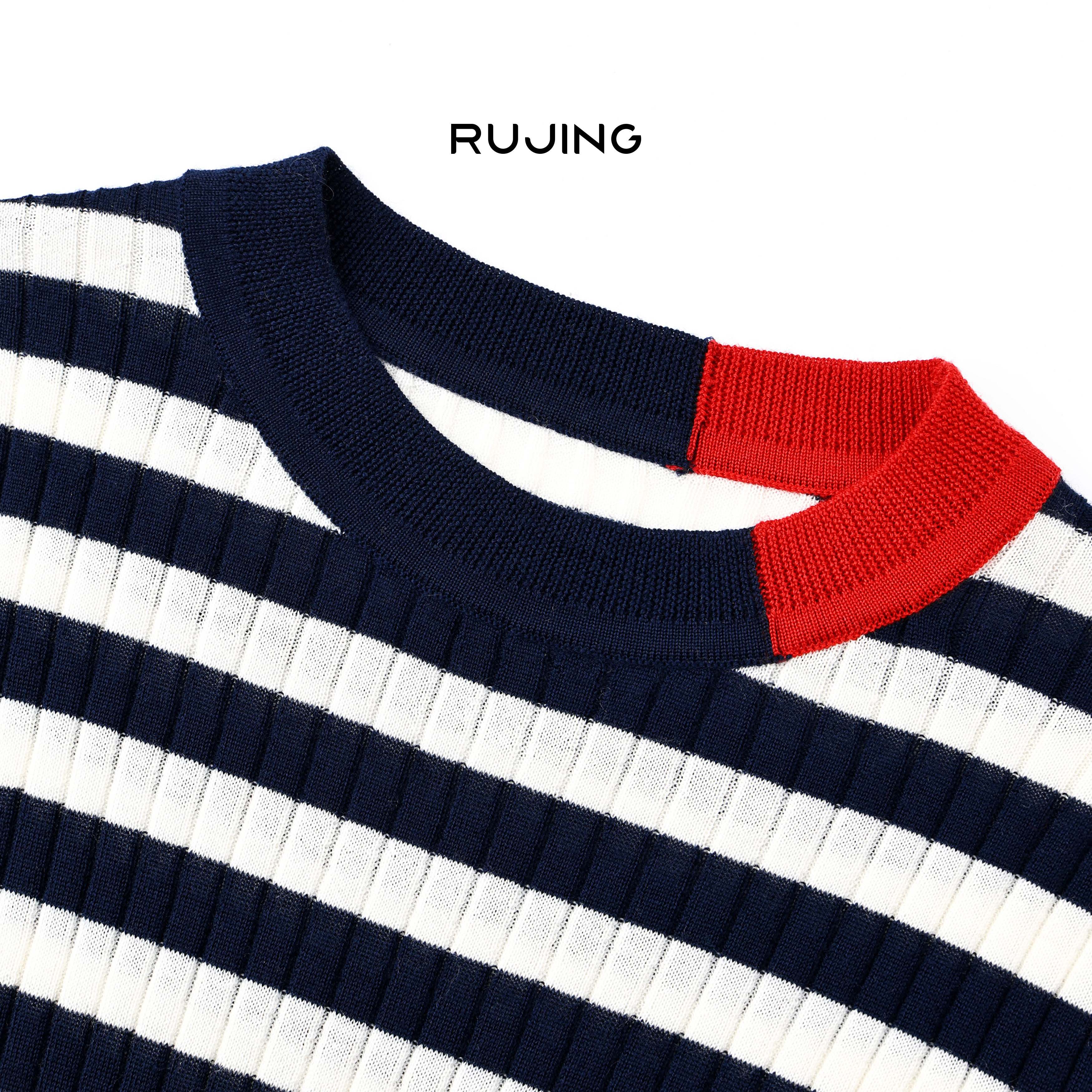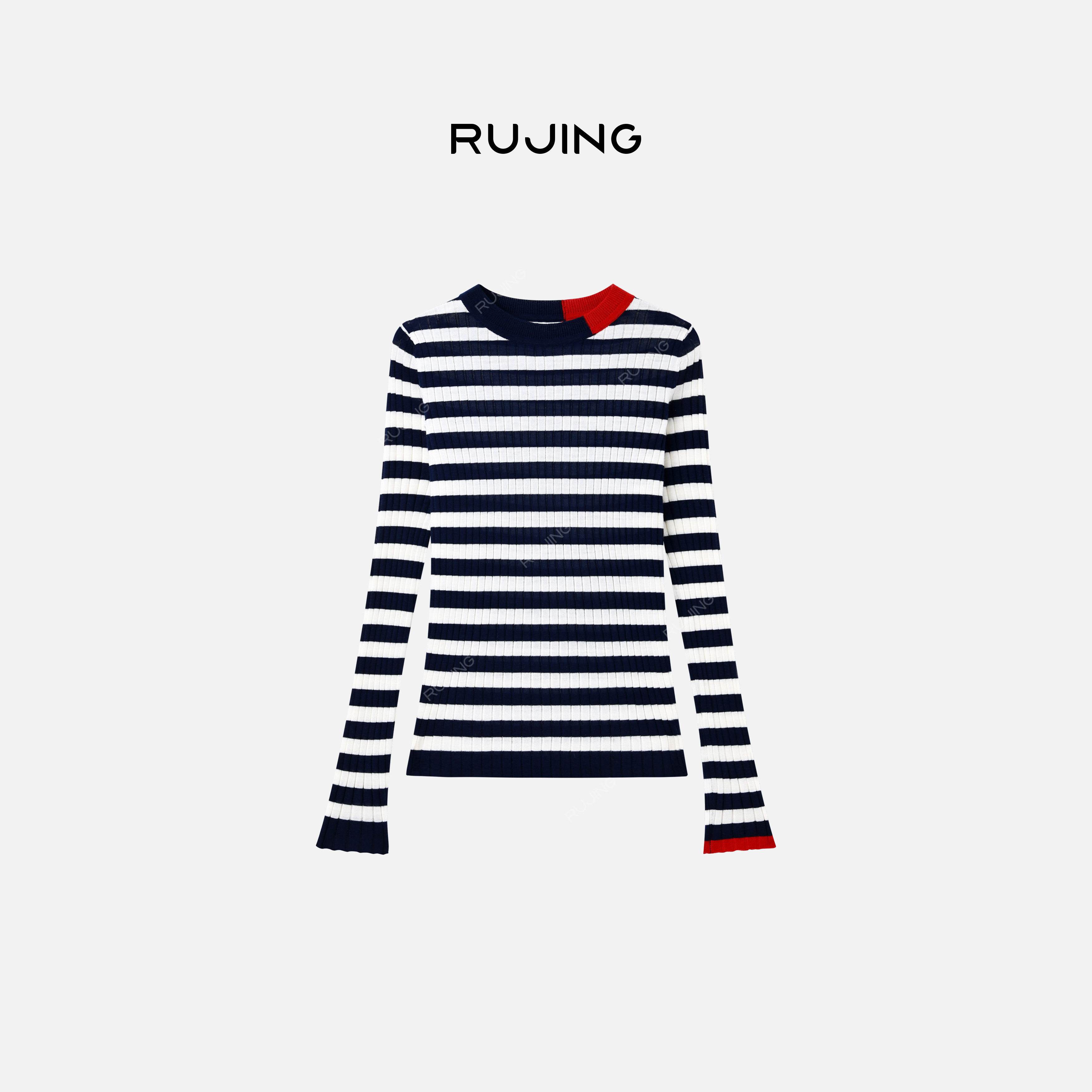 RUJING 丨【条纹律动】扬子2/60支100%羊毛圆领条纹长袖针织衫