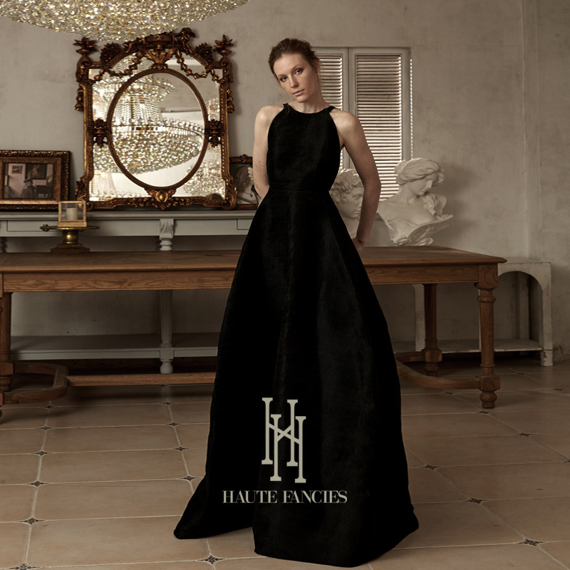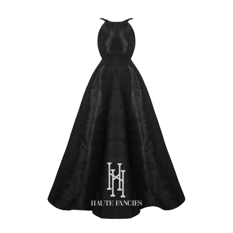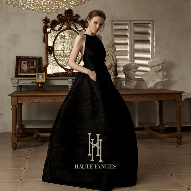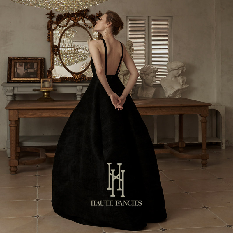 高定 HAUTE FANCIES后构想|法式优雅黑色背带款露背大摆晚礼服裙