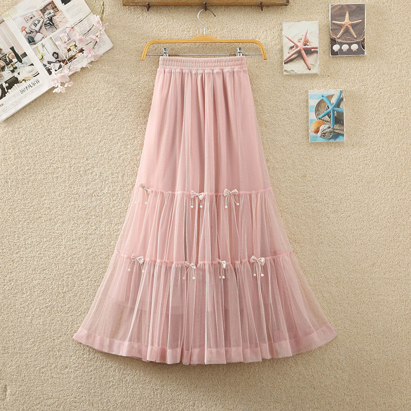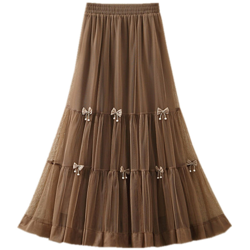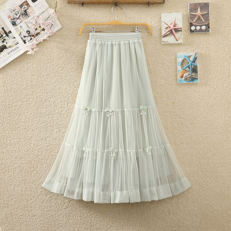 首页> 女装> 蝴蝶结纱裙女春夏新款甜美a字大摆蓬蓬蛋糕裙网纱裙中长款半身裙
