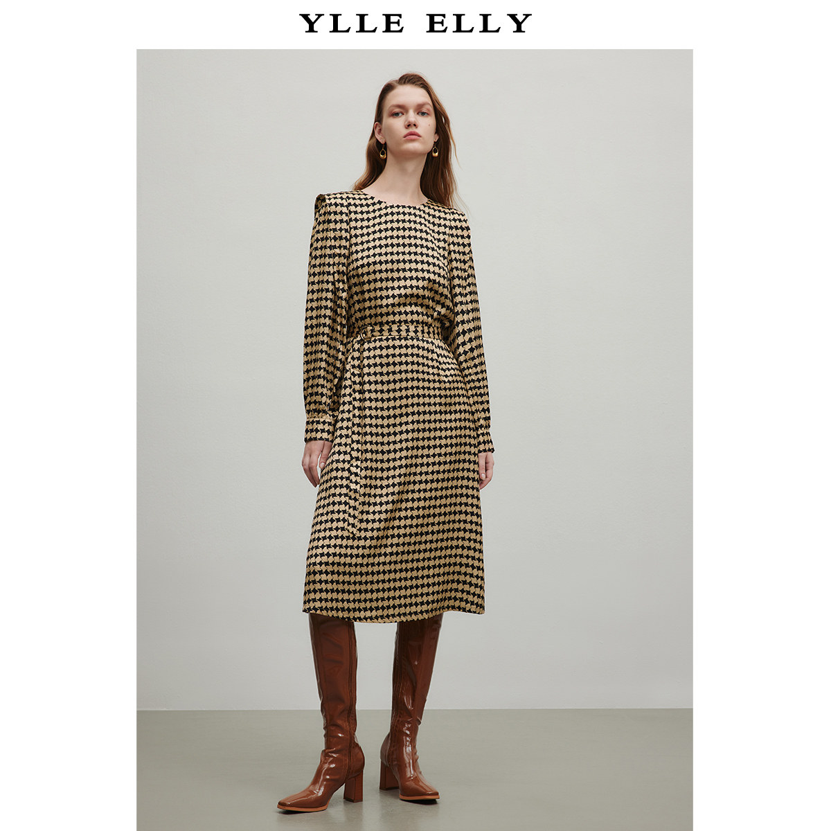 【粉丝专属】优雅气质连身裙女2025春季新款设计感黄黑长裙