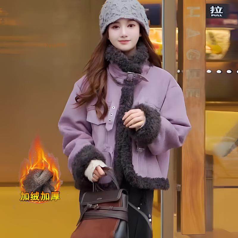 香港代购加绒加厚皮绒短款外套女冬季新款显瘦皮毛一体保暖上衣潮