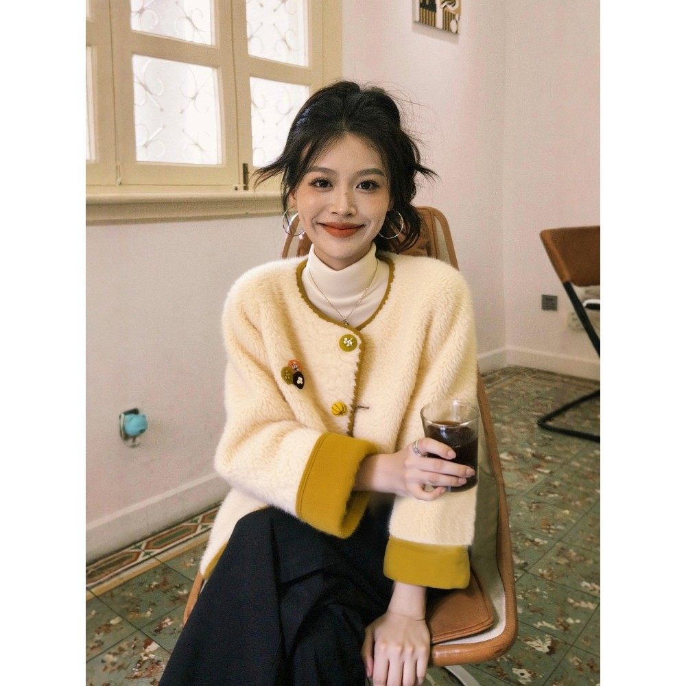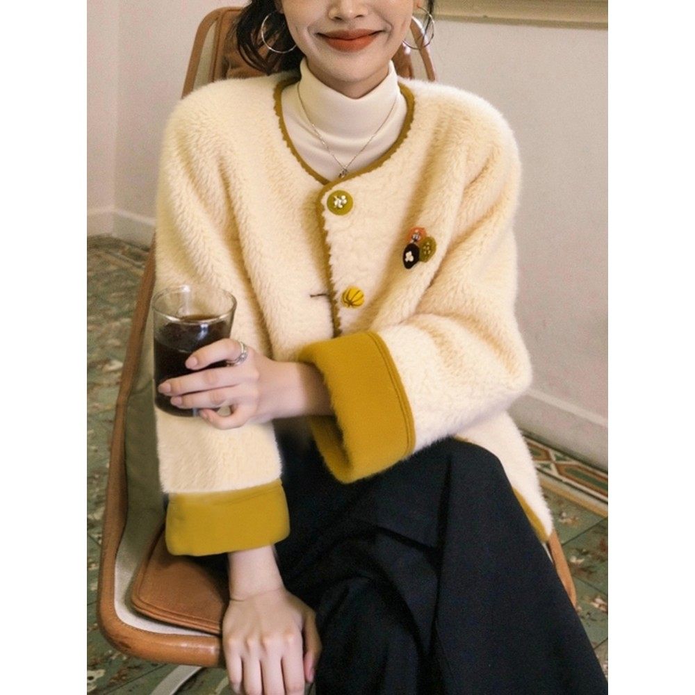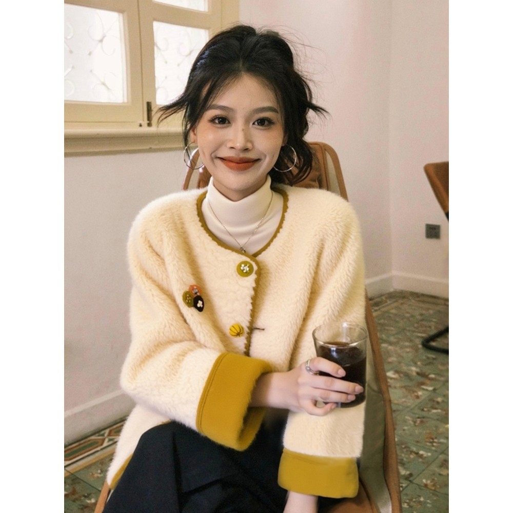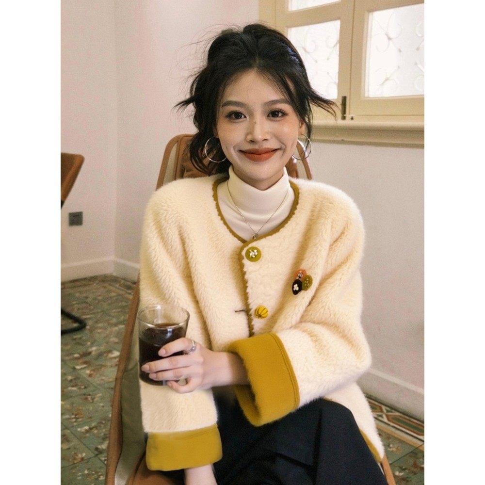 2025新款宽松慵懒风加厚毛毛上衣独特漂亮皮毛一体羊羔毛外套女冬