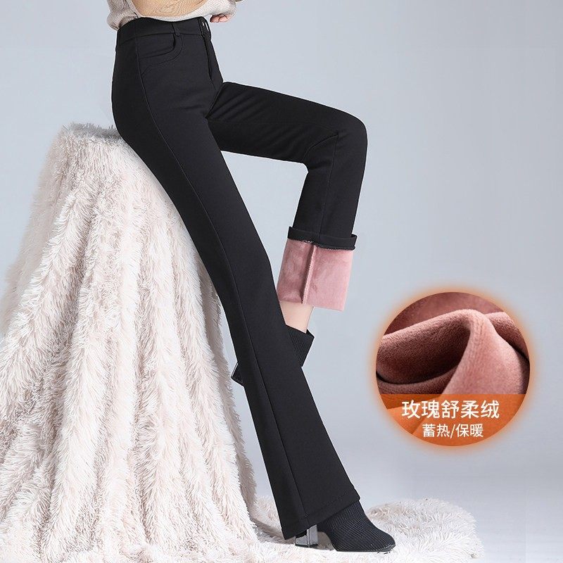 加绒喇叭裤子女外穿高腰2025冬季新款加厚显瘦休闲直筒微喇裤西裤