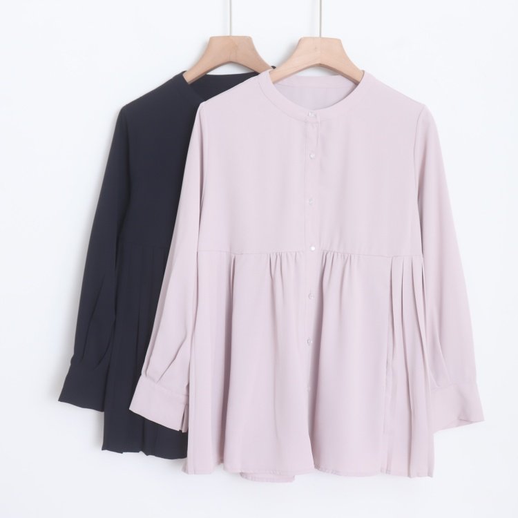 首页> 女装> D16056日单贵牌新款客供料单排珍珠扣圆领宽松女纯色气质长袖衬衫