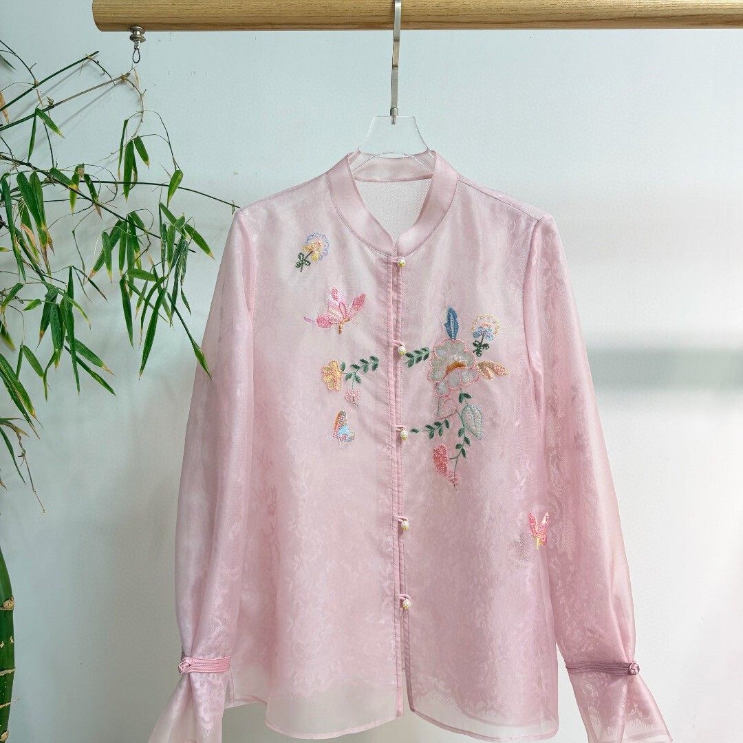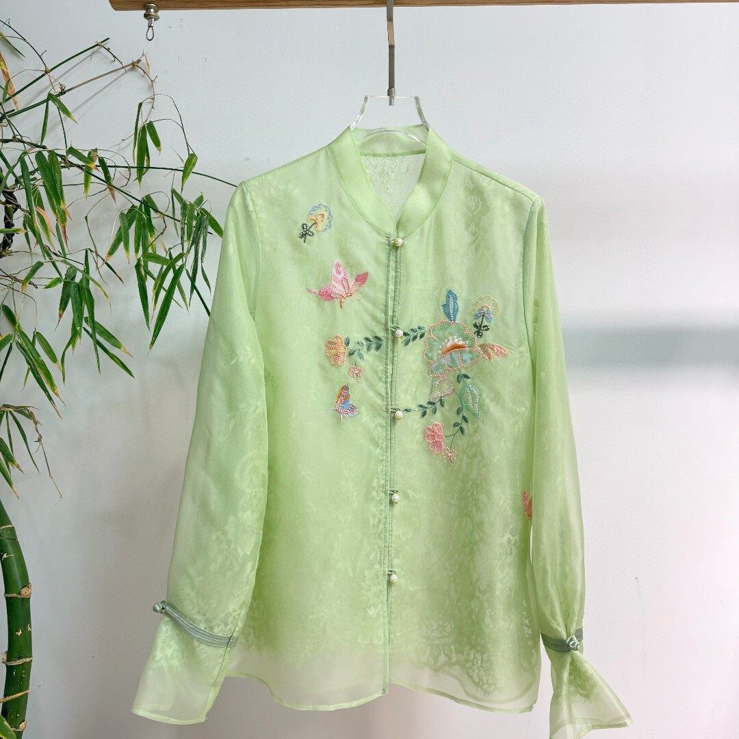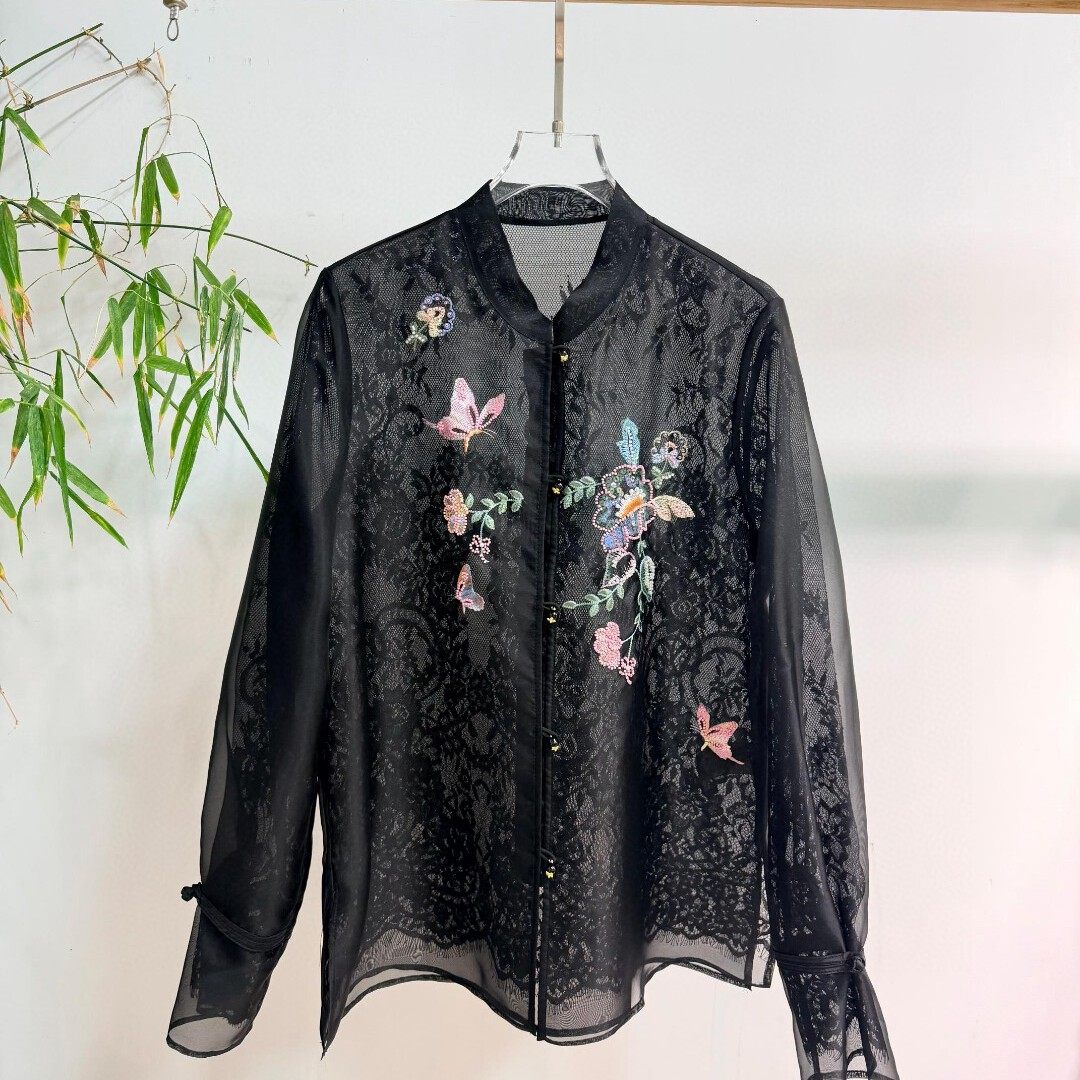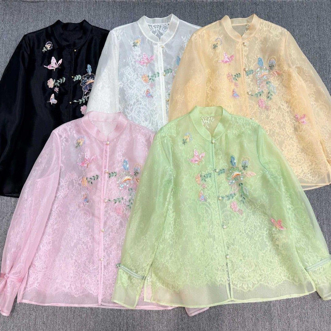 2026早春上新真丝重工定位彩色绣花高档进口蕾丝里衬新中式小衫