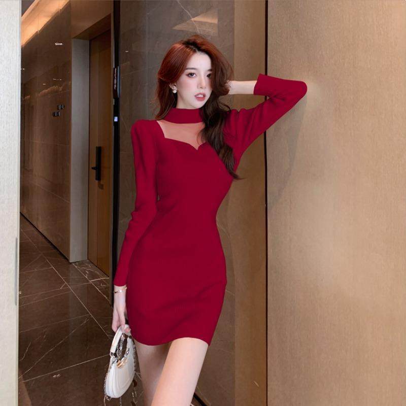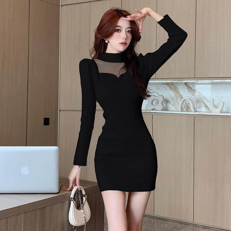 法式半高领针织连衣裙秋冬新款内搭包臀短裙小个子打底裙子女装潮