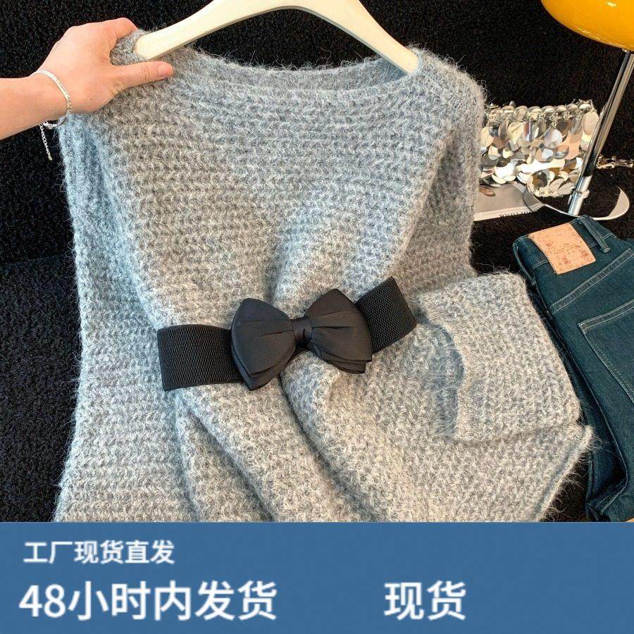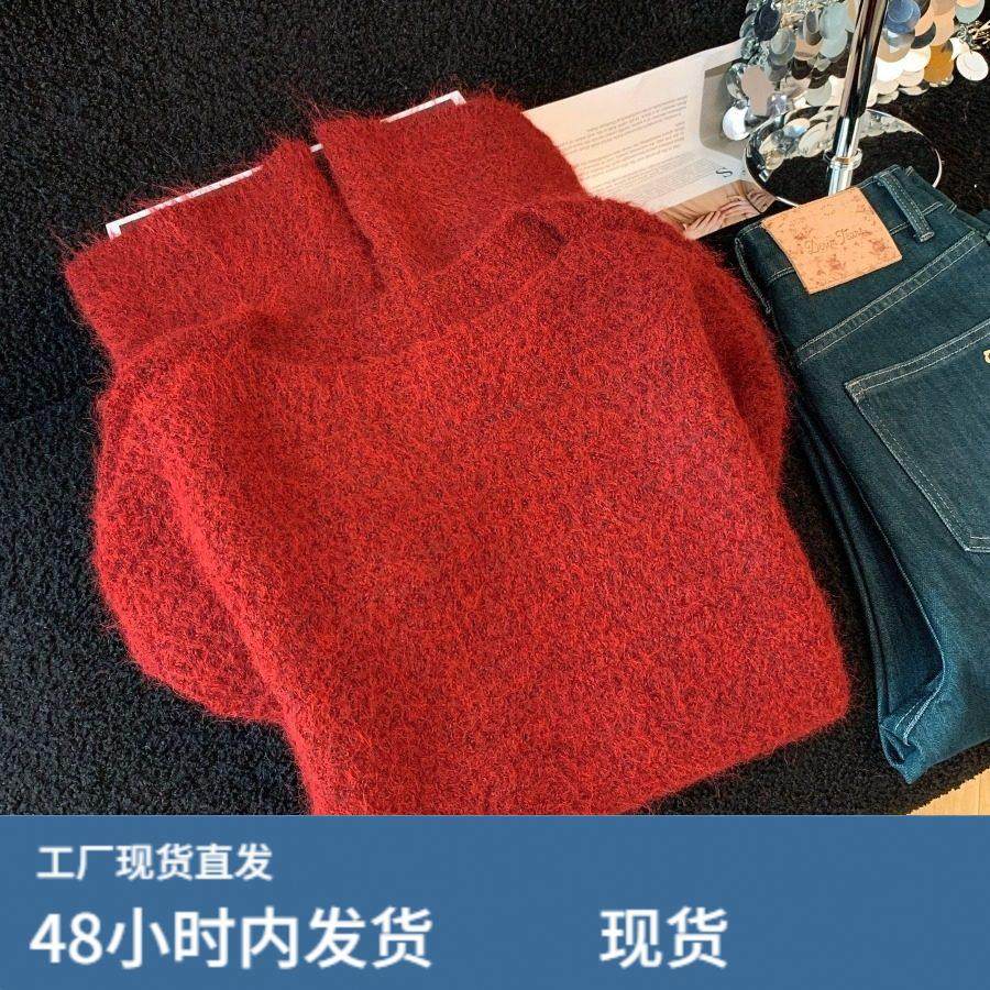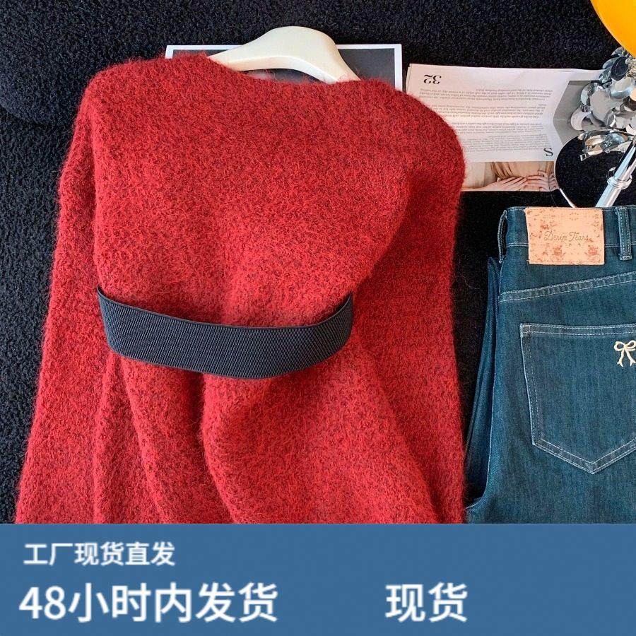 冬日氛围感穿搭~韩系风复古红色收腰毛衣女高级感百搭减龄针织衫