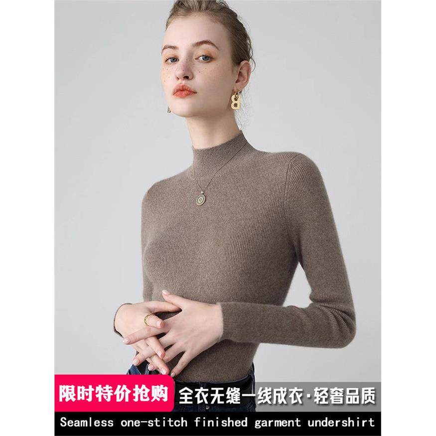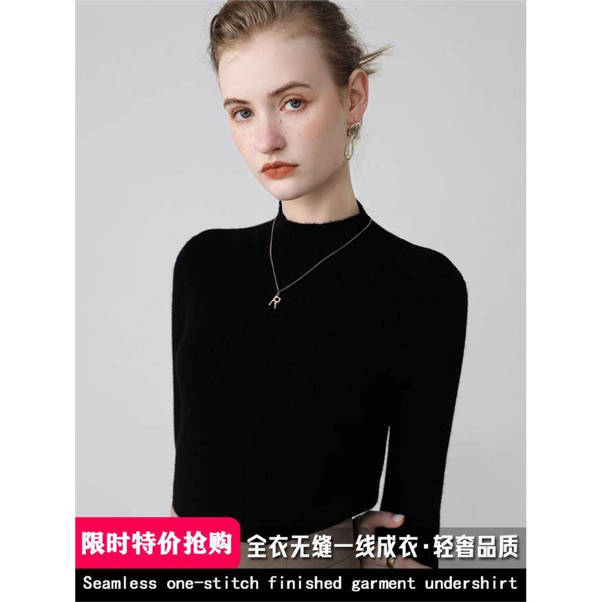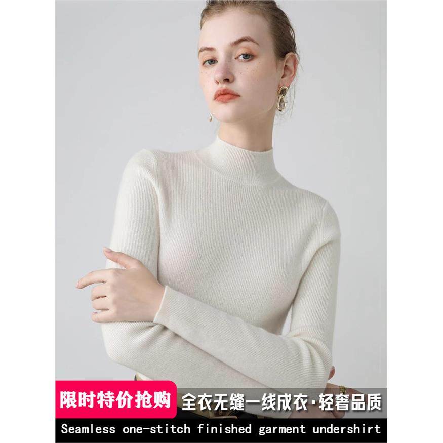 无缝一线成衣 100纯山羊绒衫女修身毛衣内搭秋冬半高领针织打底衫