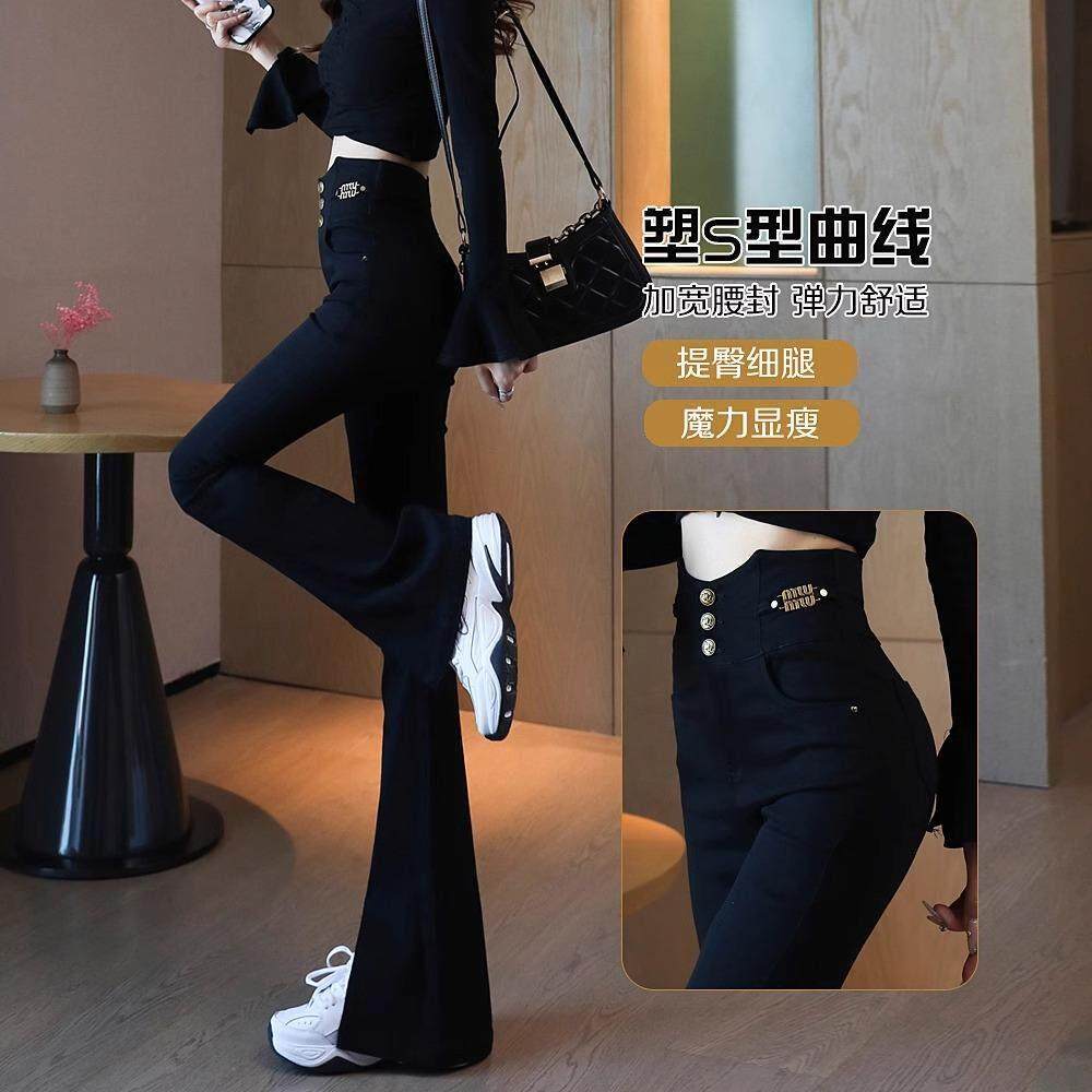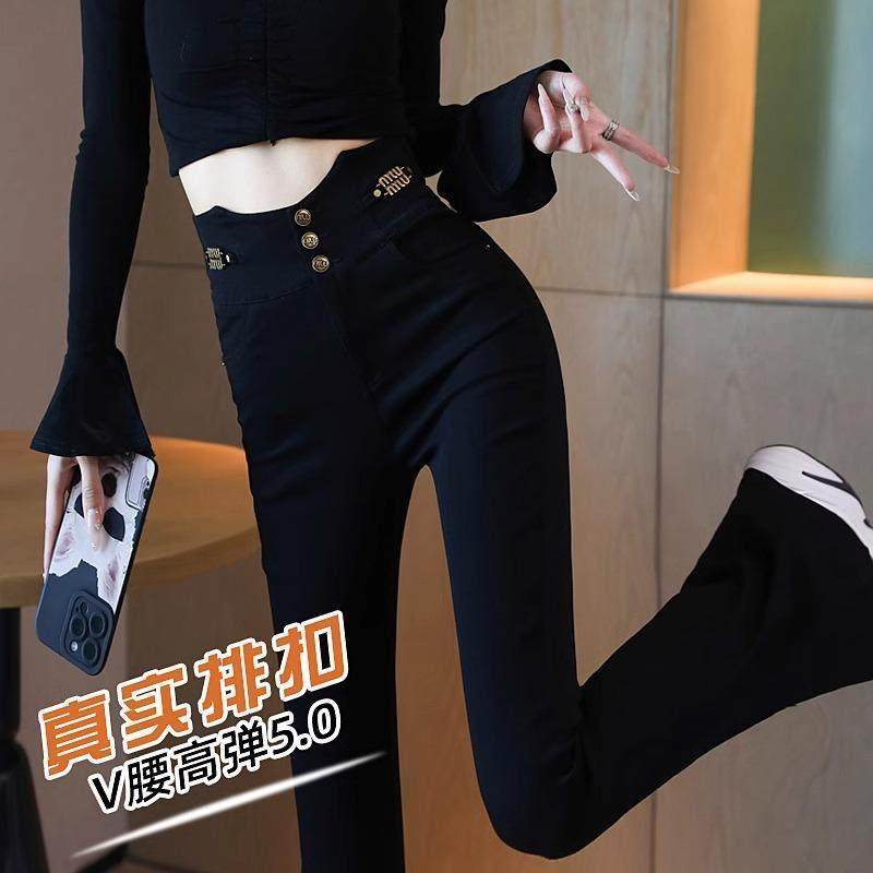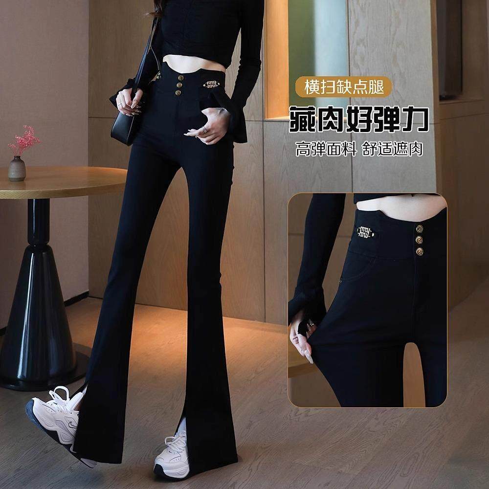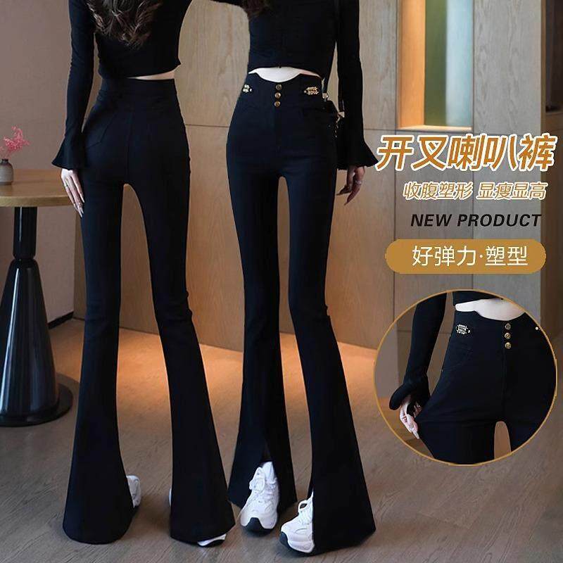 首页> 女装> 微喇叭裤子女春秋加绒2025新爆款高腰显瘦弹力垂感黑色开叉马蹄裤