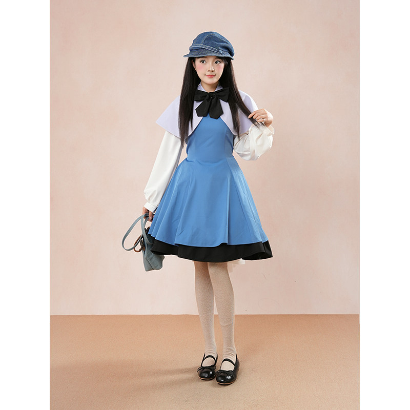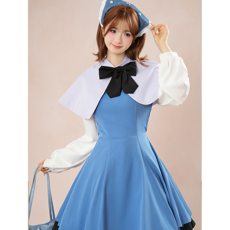 知世 秋季新款日系lolita重工设计感优雅日常披肩+连衣短裙两件套
