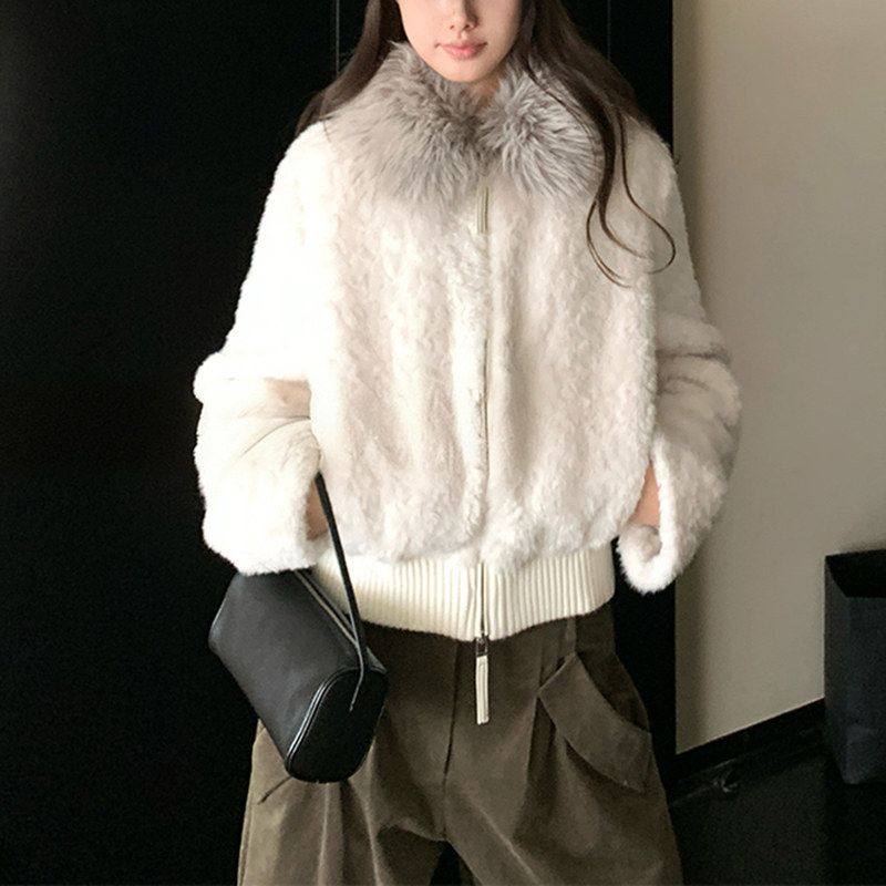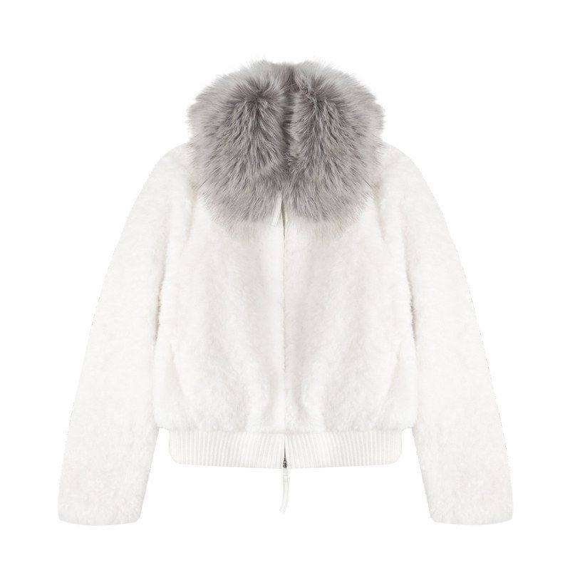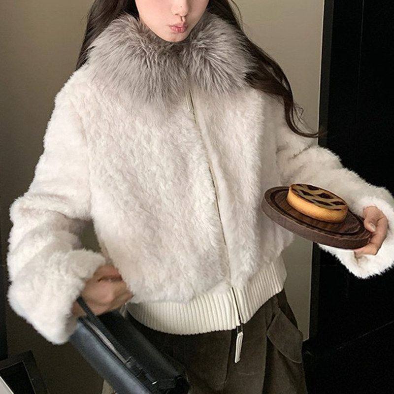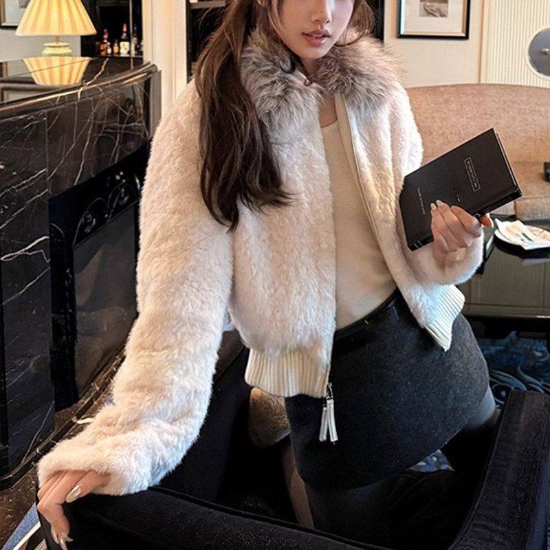 现货 暖冬咩咩 大毛领短款仿皮草外套毛绒保暖翻领冬环保毛毛外套