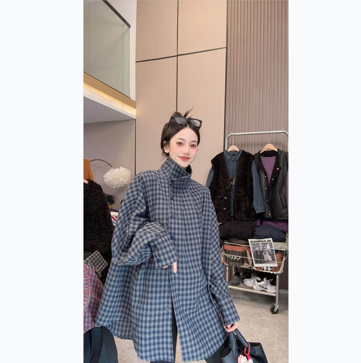 【立领格子】磨毛格纹~侧边扣设计款气质穿搭时尚休闲百搭衬衣
