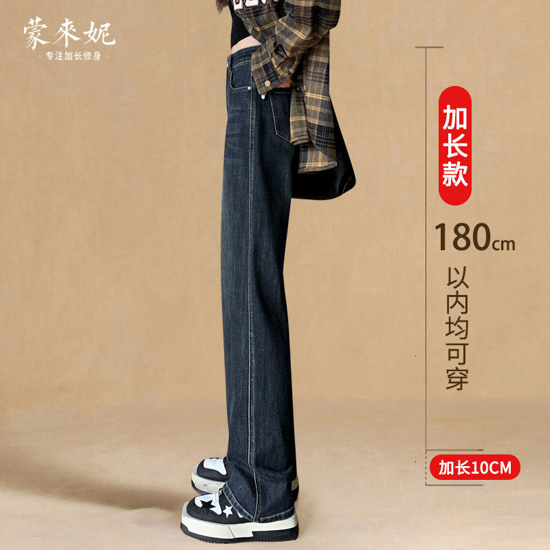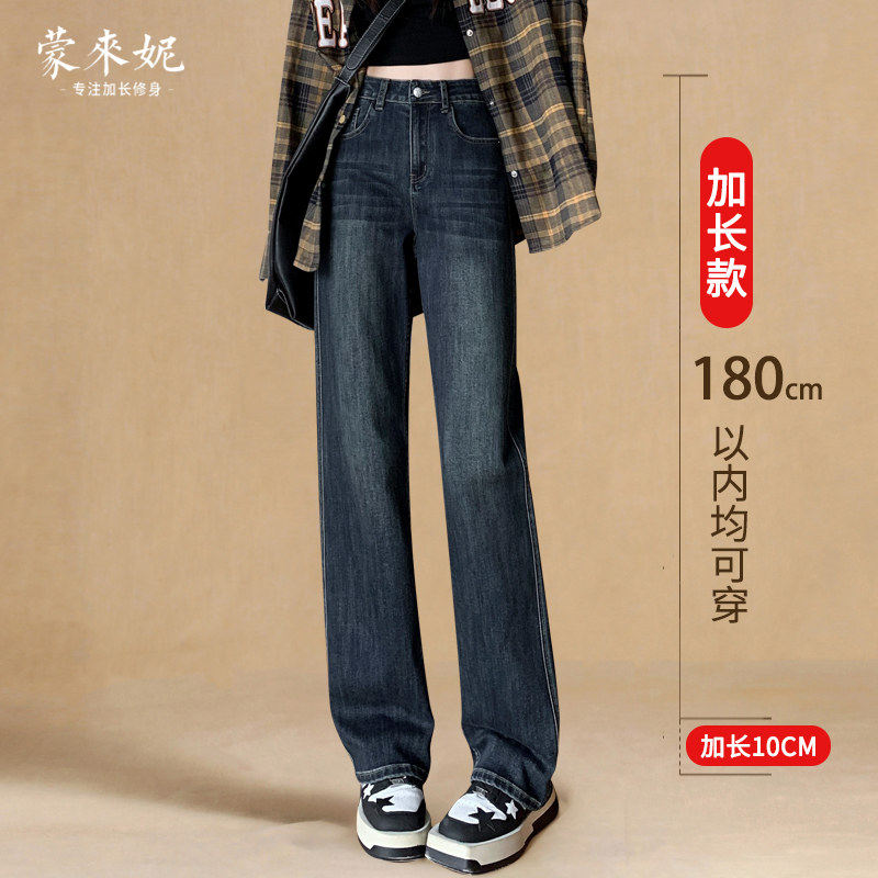 加长牛仔裤女高个子直筒裤加绒2025新款长裤高腰拖地窄版阔腿裤子