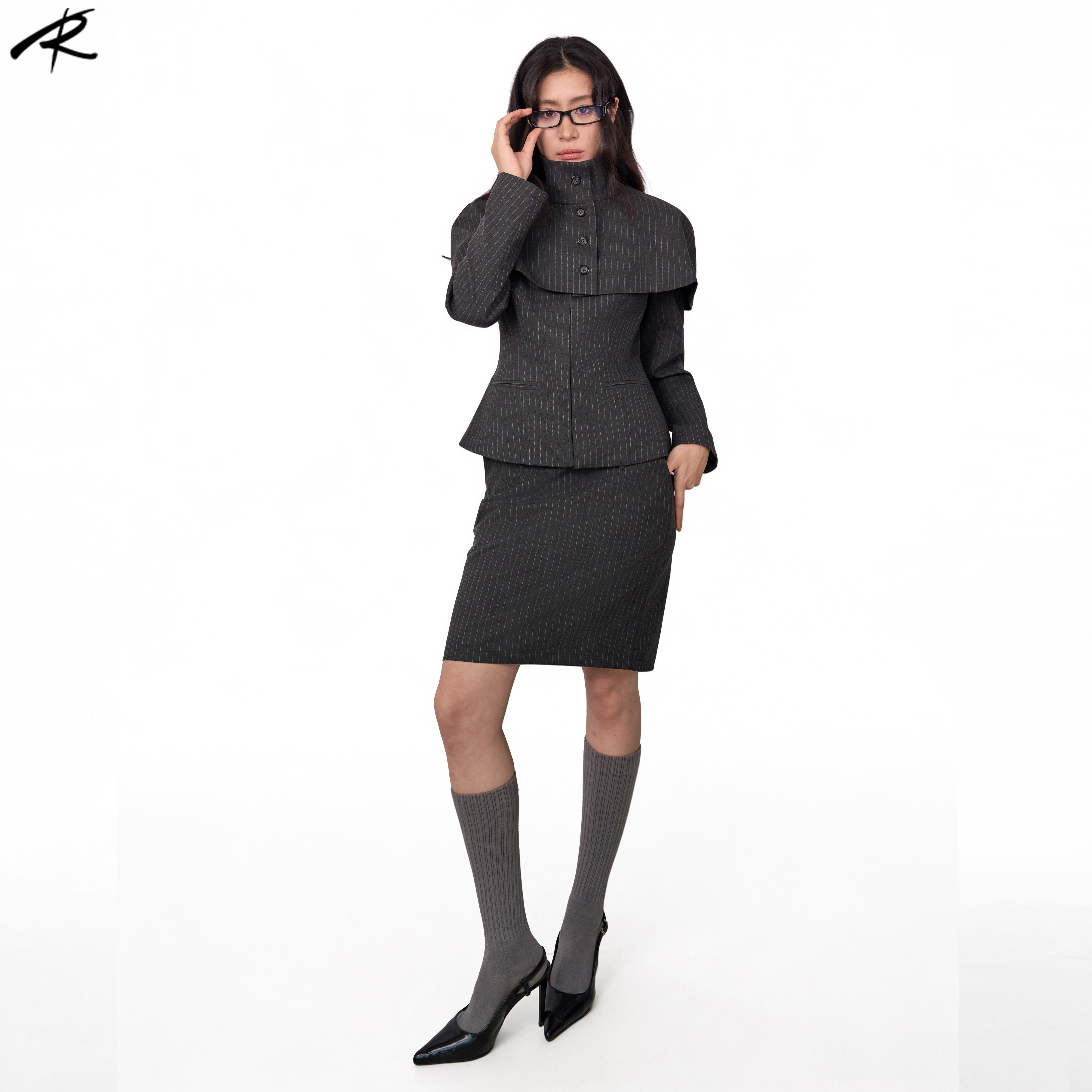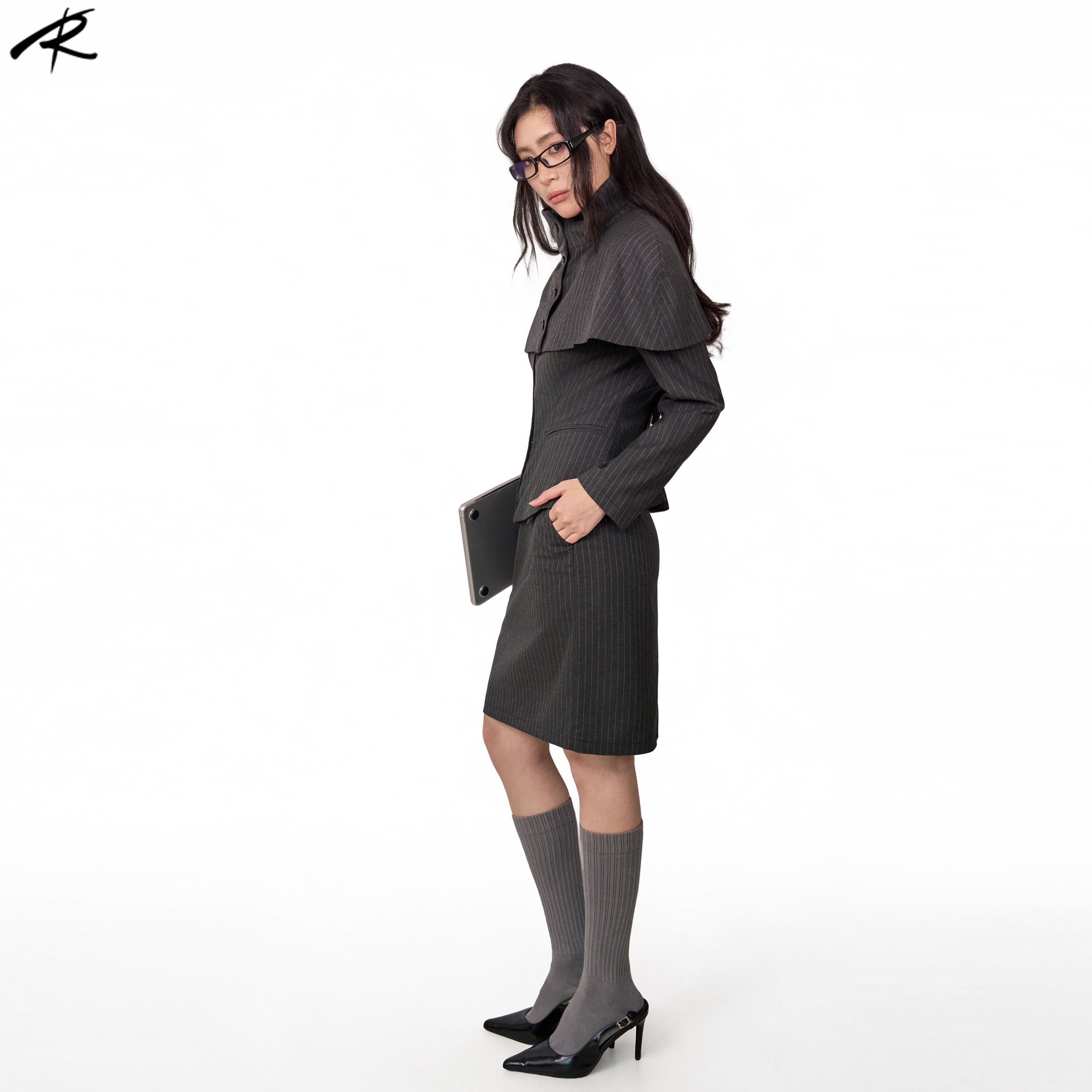 RIP THE TIE 时髦判官 深灰色条纹斗篷西装套装 高智办公室海妖风
