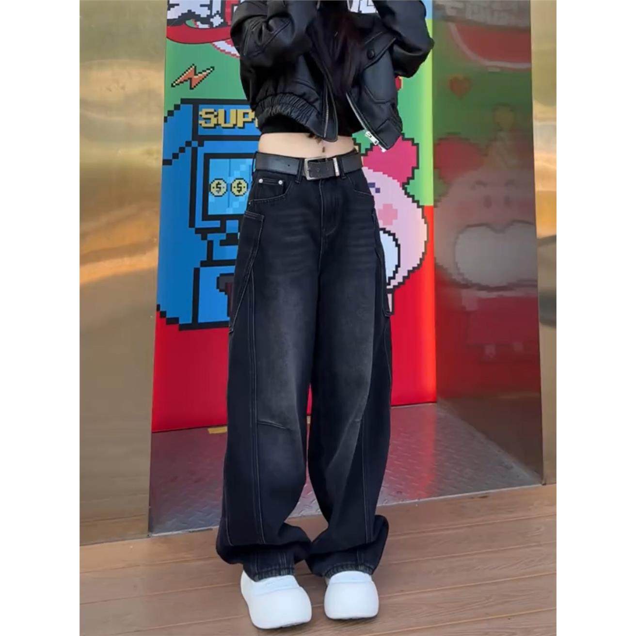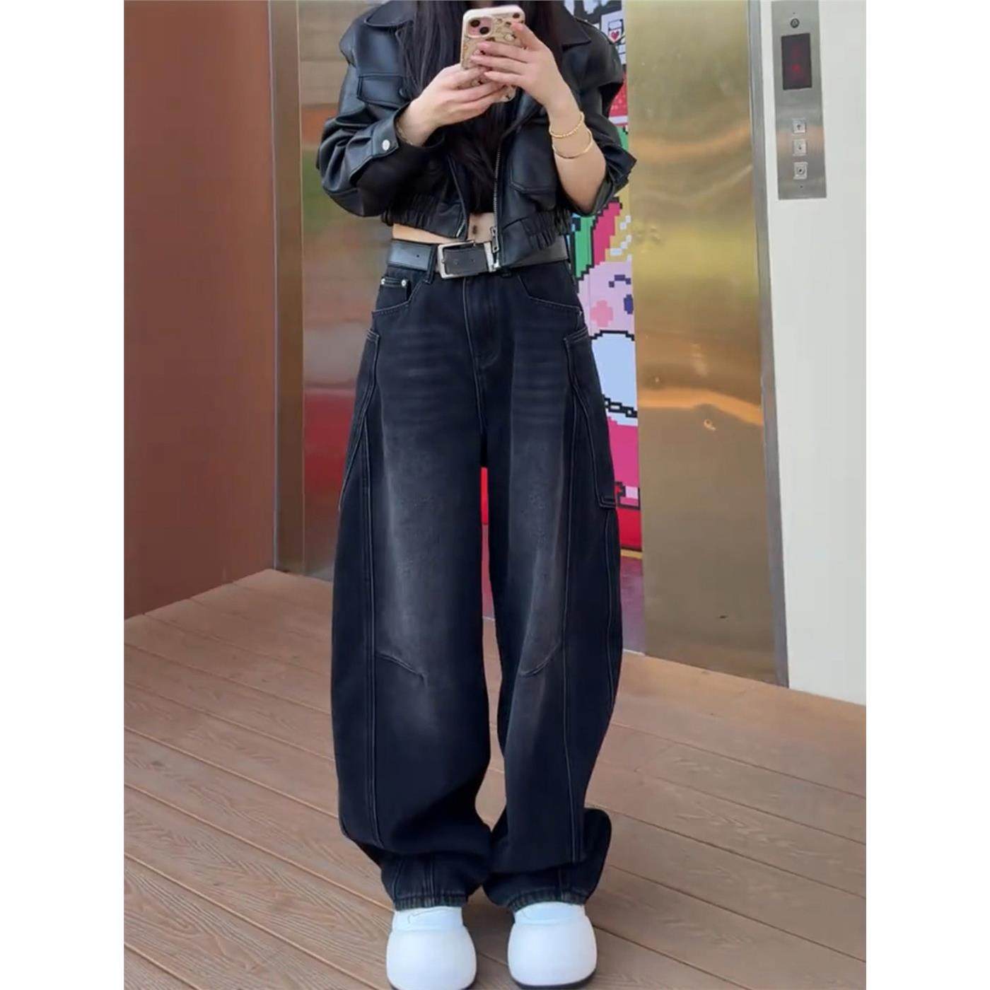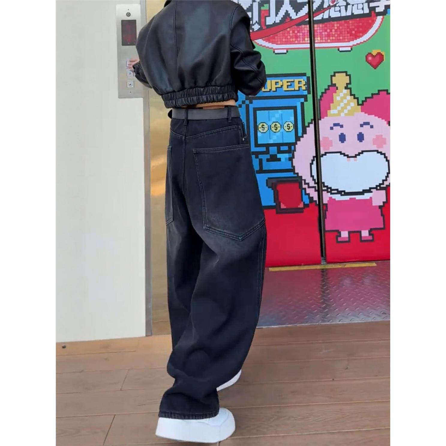 加绒加厚弯刀牛仔裤女秋冬季2025新款阔腿裤大码胖mm显瘦直筒裤子