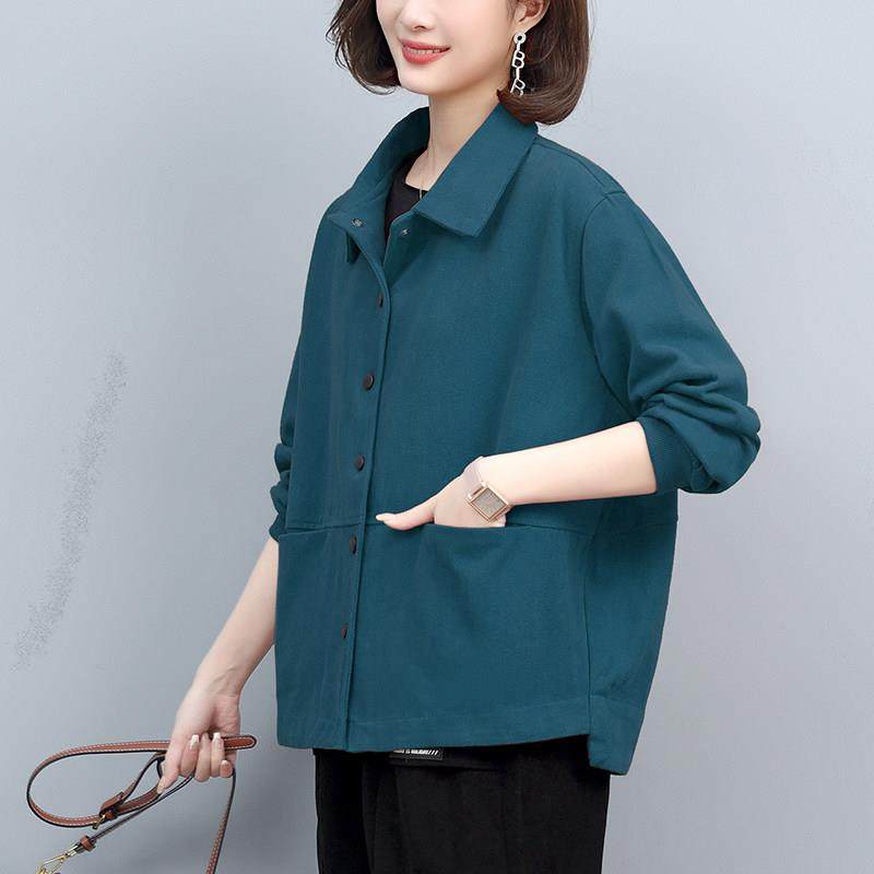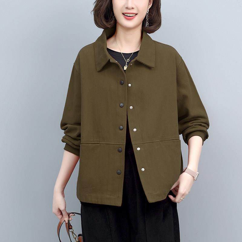 大尺码休闲时尚洋派外套女2025春秋新款妈妈宽松春装漂亮纯棉上衣
