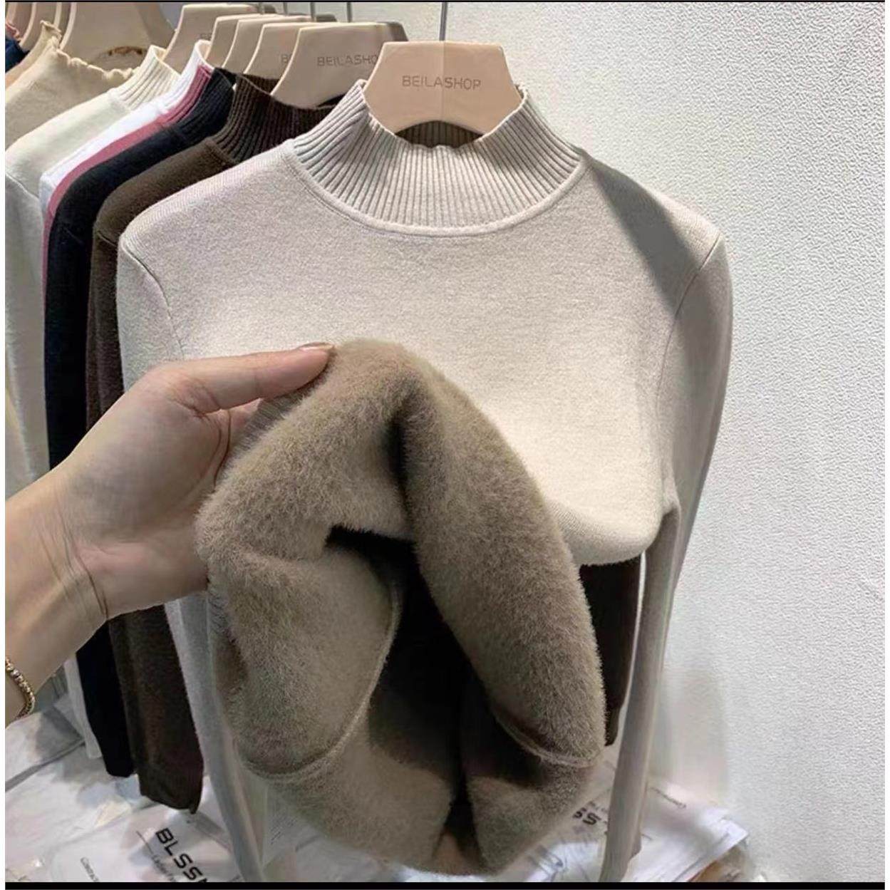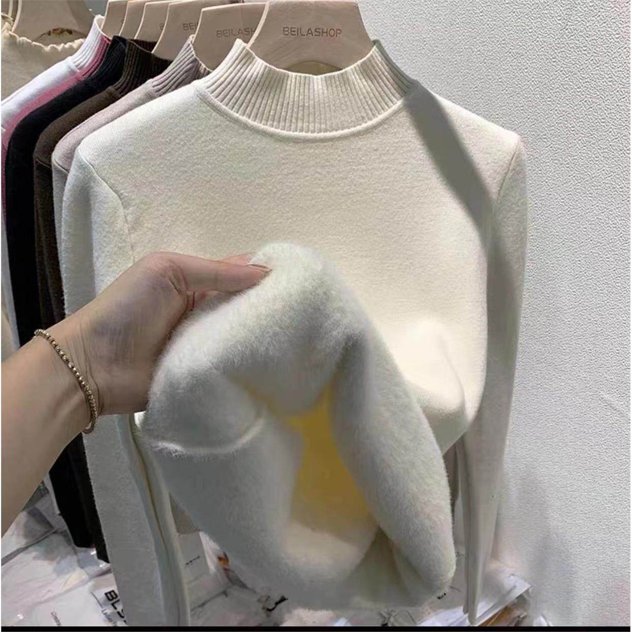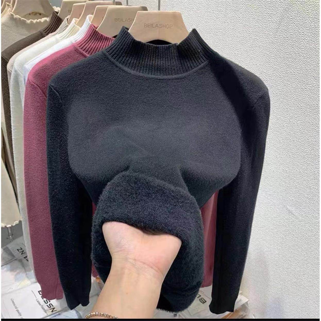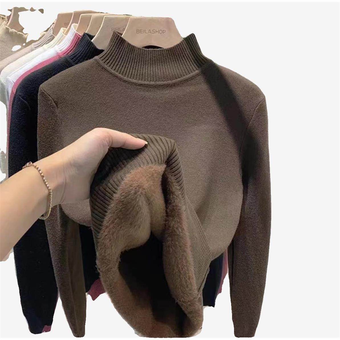 加绒打底衫女毛衣加厚一体绒冬季新款保暖上衣针织内搭半高领套头